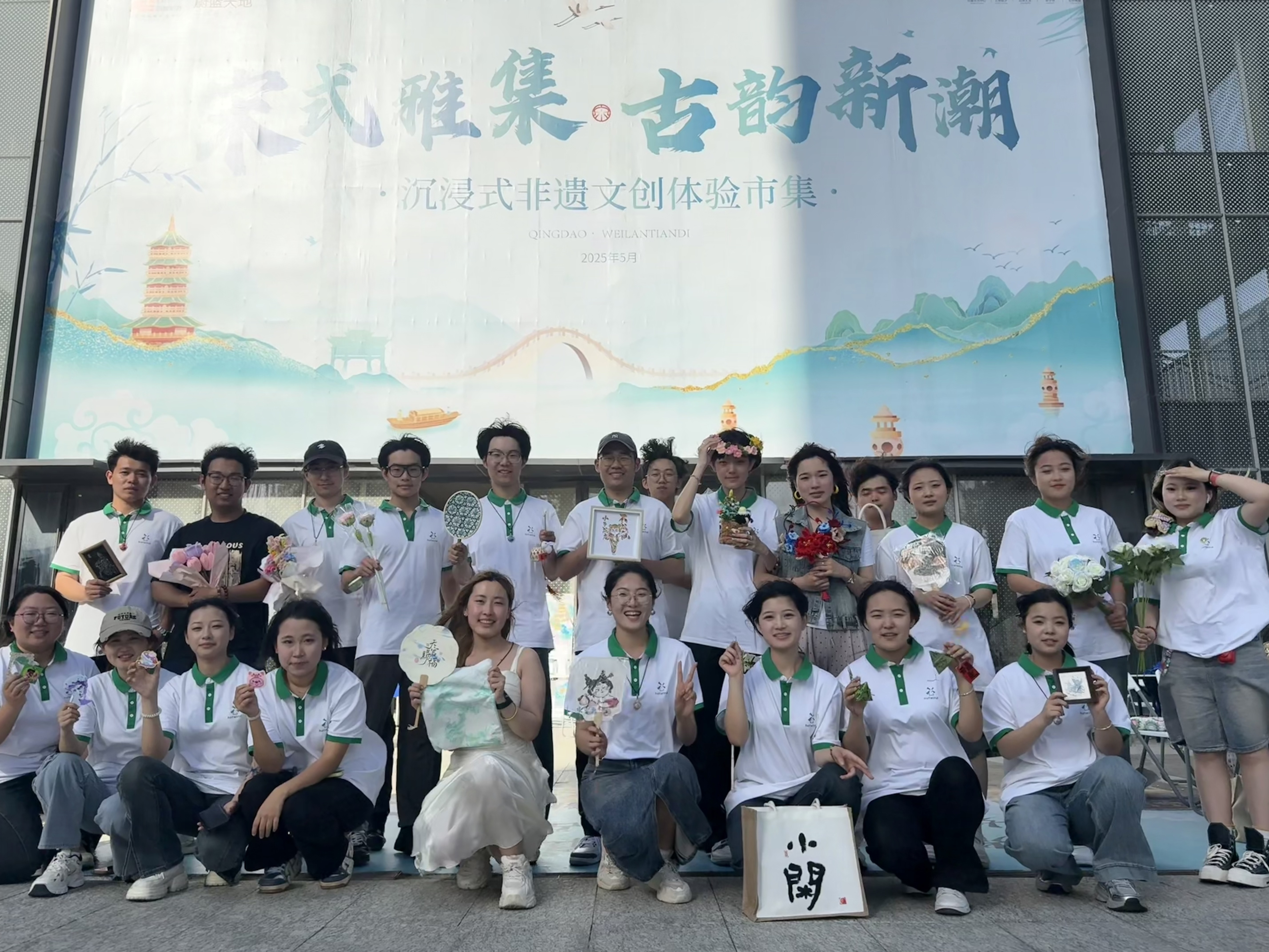 5月20日,青岛农业大学艺术学院第二届创意文化节暨艺术市集在城阳区百富东方・蔚蓝天地开幕。学院党政领导、合作企业领导嘉宾等参观并指导活动开展,来自四个年级多个班级的近百位“文创主”带着精心准备的文创品参展。