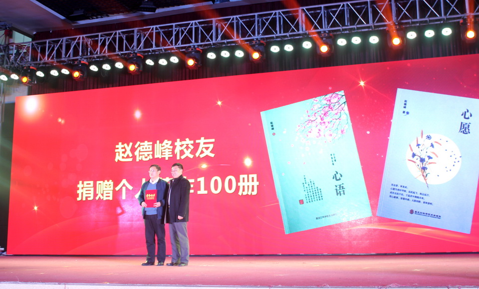 寿光鸡宝宝肉鸡养殖专业合作社总经理赵德峰校友向学校图书馆和学院捐赠了价值7000元的个人著作《心语》《心愿》100册。