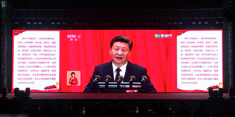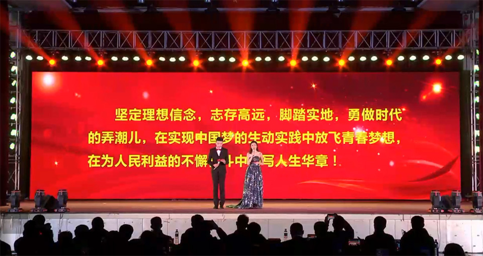 “青年兴则国家兴,青年强则国家强……”晚会上,大家一起重温了习近平总书记在党的十九大报告中对青年的寄语。大屏幕上,习总书记铿锵有力的话语,响彻晚会全场,激励着现场的青年学子,坚定理想信念,志存高远,脚踏实地,勇做时代的弄潮儿,在实现中国梦的生动实践中放飞青春梦想,在为人民利益的不懈奋斗中书写人生华章!