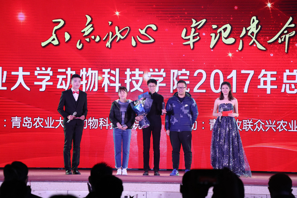 学院党总支书记潘庆杰在晚会上致辞,向获奖者表示祝贺,向合作企业、校友表示感谢。他总结回顾了一年来动物科技学院在党建思政、学科建设、人才培养、社会服务等方面开展的工作和取得的成绩。他指出,这一年,我们坚持思想引领,党建和思想政治工作取得新进步;这一年,我们追求学术创新,学科建设工作取得新进展;这一年,我们坚持育人为本,人才培养工作取得新成绩;这一年,我们奉献聪明才智,社会服务工作拓展新领域。他强调,建设高水平的动科学院,始终是动科人的梦想和追求,新时代,开启新征程,动科人将牢记使命,勇于担当,为实现学院新的发展目标而努力奋斗。