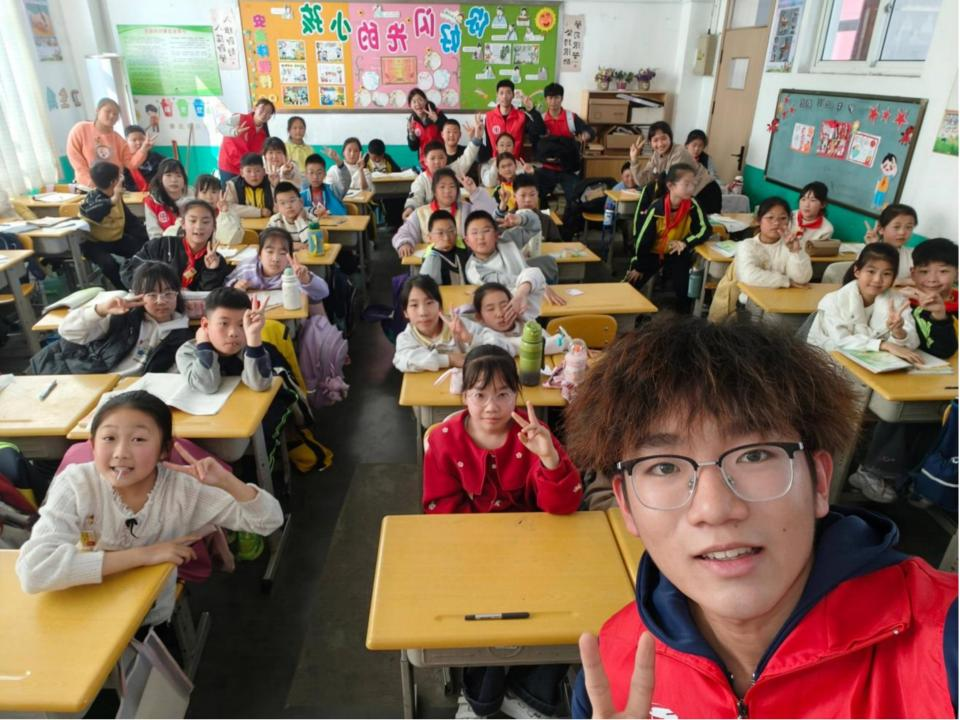 图为社会实践指导中心的同学们与南村小学学生们的合影