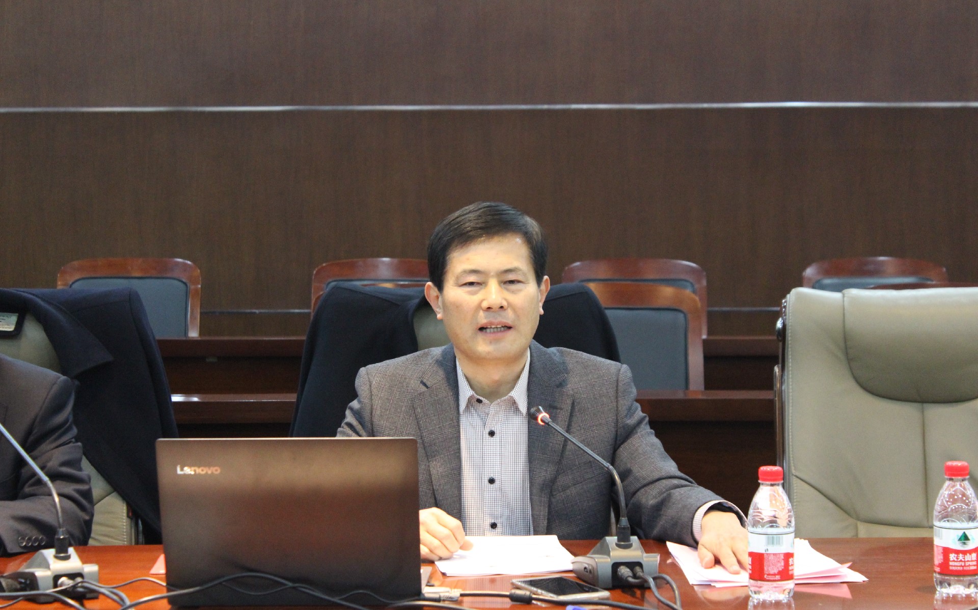 在奏唱庄严的国歌之后,原永兵、慕乾伟分别讲话。原永兵首先肯定大家一年来的工作成绩,勉励大家要进一步增强政治意识,提升思想境界;继续开拓创新,提高工作质量;充分发挥自身优势,加大服务学校招才引智和强化学科建设的工作力度。