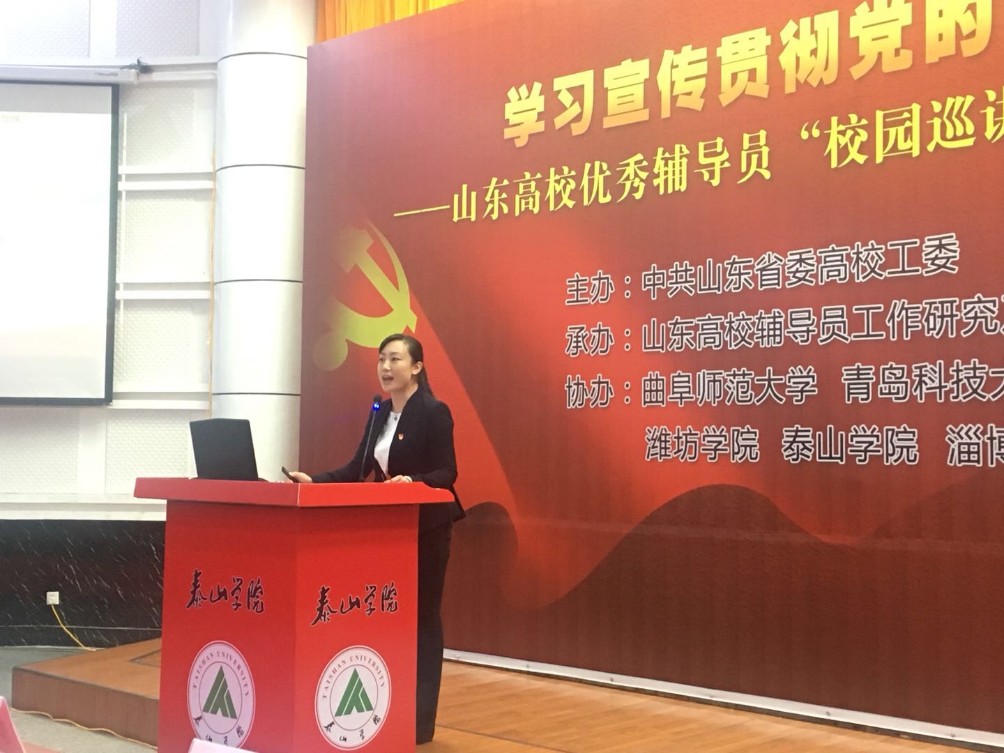 12月14日下午,由中共山东省委高校工委主办的“学习宣传贯彻党的十九大精神——山东高校优秀辅导员‘校园巡讲’和‘网络巡礼’活动”在泰山学院举行。第八届山东高校十佳辅导员、青岛农业大学园林与林学院辅导员孙贝贝作为山东高校优秀辅导员学习宣传贯彻党的十九大精神校园巡讲团成员,作了题为《理解党建新篇章 吹响前进新号角》的主题宣讲。整个宣讲过程中,孙贝贝引经据典,列举了大量鲜活实例与工作案例,从全面从严治党的角度生动解读了党的十九大报告,现场反响热烈,有效推动了十九大精神在高校的学习宣传贯彻,推动了党的十九大精神入脑入心。