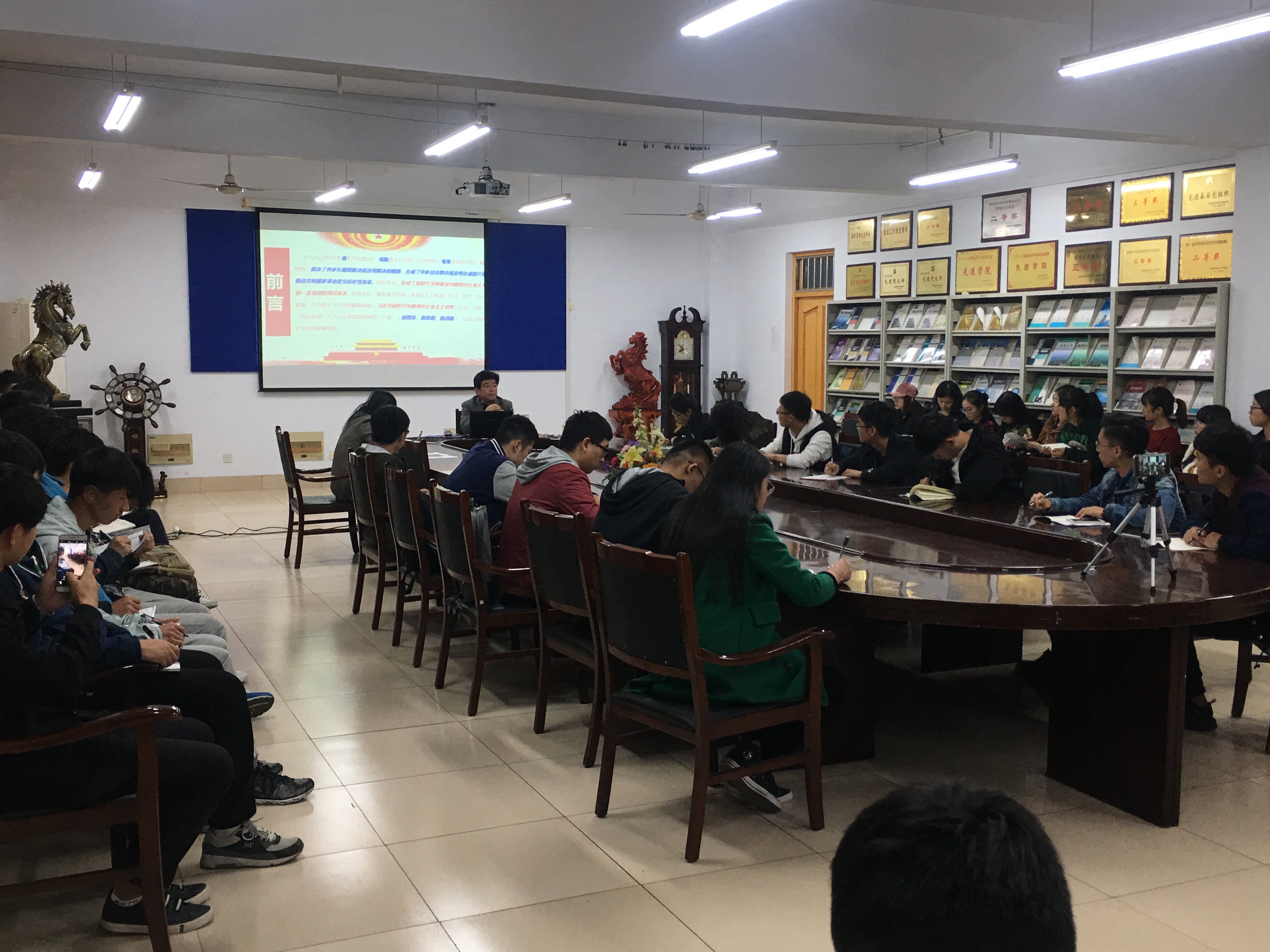 11月7日,为深入学习贯彻党的第十九次全国代表大会精神,根据《中共青岛农业大学委员会关于认真学习宣传贯彻党的十九大精神的通知》文件要求,建工学院举办“学习党的十九大精神”报告会,这也是学院面向学生开展党的十九大精神专题宣讲的“第一讲”。学校党的十九大精神宣讲团成员、学院党委书记田义轲主讲,学院全体学生党员、第二十一期入党积极分子、2017年下半年党员发展对象参加报告会。