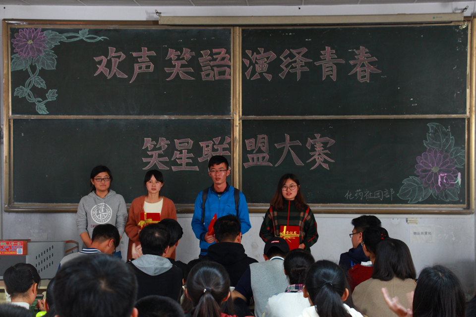 10月28日,青岛农业大学化学与药学院于教学区举办以“欢声笑语,演绎青春”为主题的笑星联盟大赛,学院16、17级全体学生参加活动。