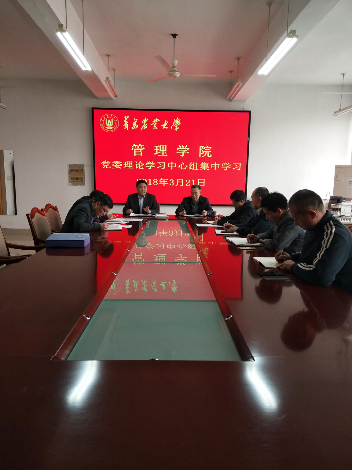 3月21日,青岛农业大学管理学院在文经楼会议室开展党委理论学习中心组集中学习活动,学院党委理论学习中心组全体成员参加,会议由院党委书记唐传成主持。