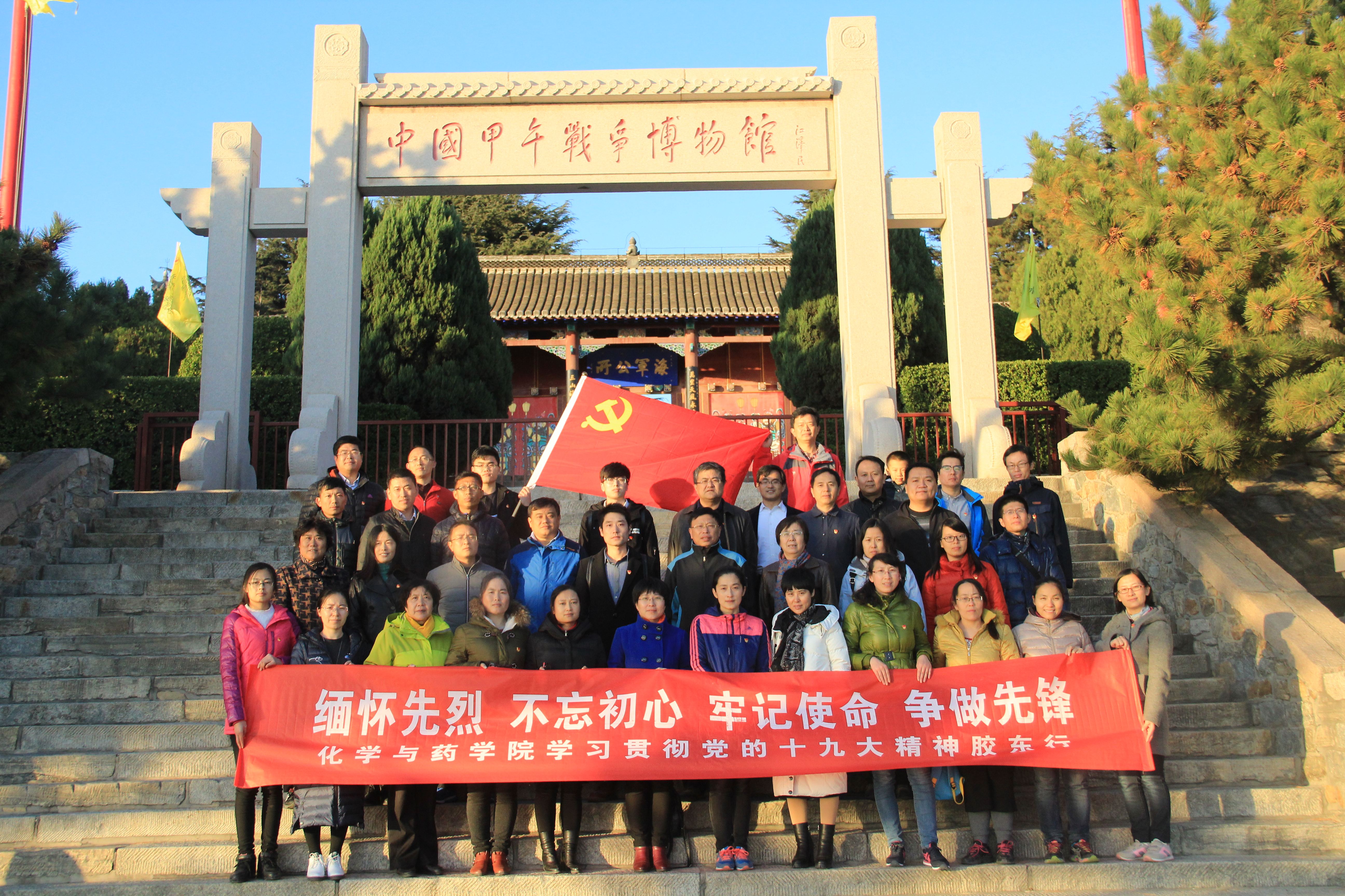 为学习贯彻党的十九大精神,深入推进“两学一做”学习教育常态化、制度化,增强党员干部党性修养和党员意识,11月11日至12日,青岛农业大学化学与药学院党委组织党员赴胶东(威海)党性教育基地进行教育培训,并开展“缅怀先烈,不忘初心,牢记使命,争做先锋”主题教育活动。