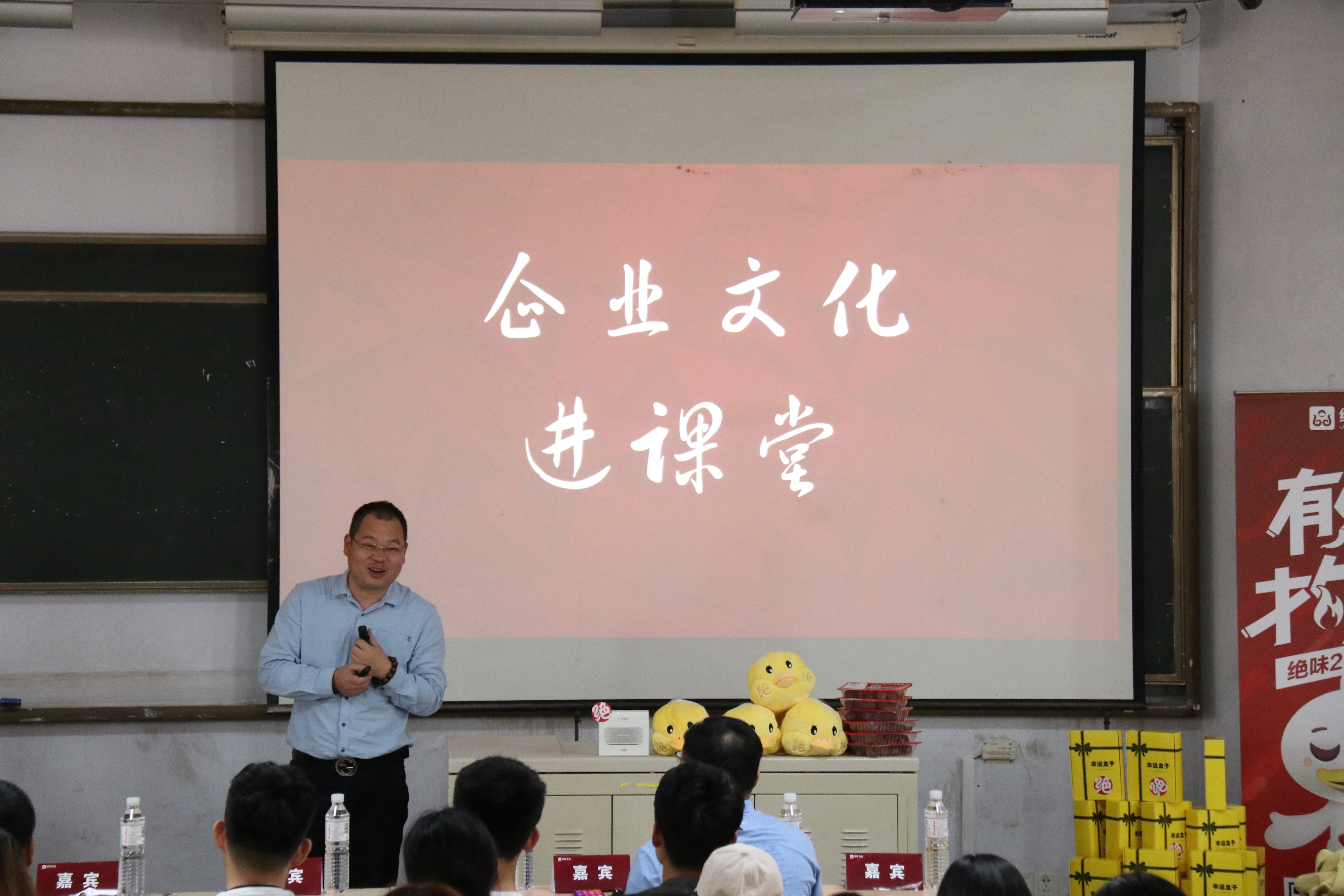 5月19日,应青岛农业大学食品科学与工程学院邀请,绝味食品股份有限公司副总经理兼综合支持中心总监刘全胜在教学区为学院第四届创新创业商务培训班学员授课,学院团委书记李永青与培训班学员共同参加。