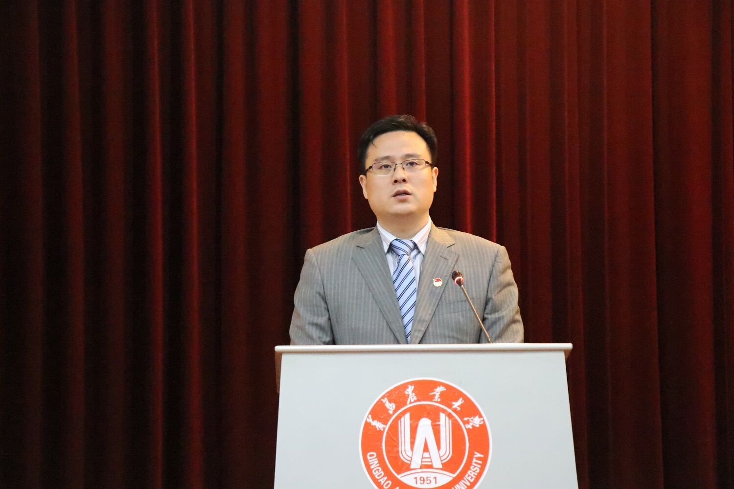伴随着庄严的国歌声,大会正式拉开序幕。王峰代表共青团青岛农业大学委员会致开幕辞。他首先向一直以来重视和关心共青团工作的各位领导致以衷心的感谢,向莅临大会的各位代表表示热烈的欢迎并致以诚挚的问候,并且对理信学院自成立以来共青团工作所取得的优异成绩表示了充分肯定,对学院团员干部和团员青年给予了高度评价。他指出,共青团工作责任重大,使命光荣,理信学院召开本次大会对今后一段时期学校共青团工作的发展将具有十分重要的意义,团干部要充分认识做好共青团工作的重要意义,成为党的有力助手和可靠后卫军。全院师生要坚持以习近平新时代中国特色社会主义思想为指导,把思想政治教育贯穿于共青团工作的全过程,广大团员干部、团员青年要更加深入的学习贯彻党的十九大精神,不断增强“四个意识”和坚定“四个自信”,做到党有号召、团有行动。
