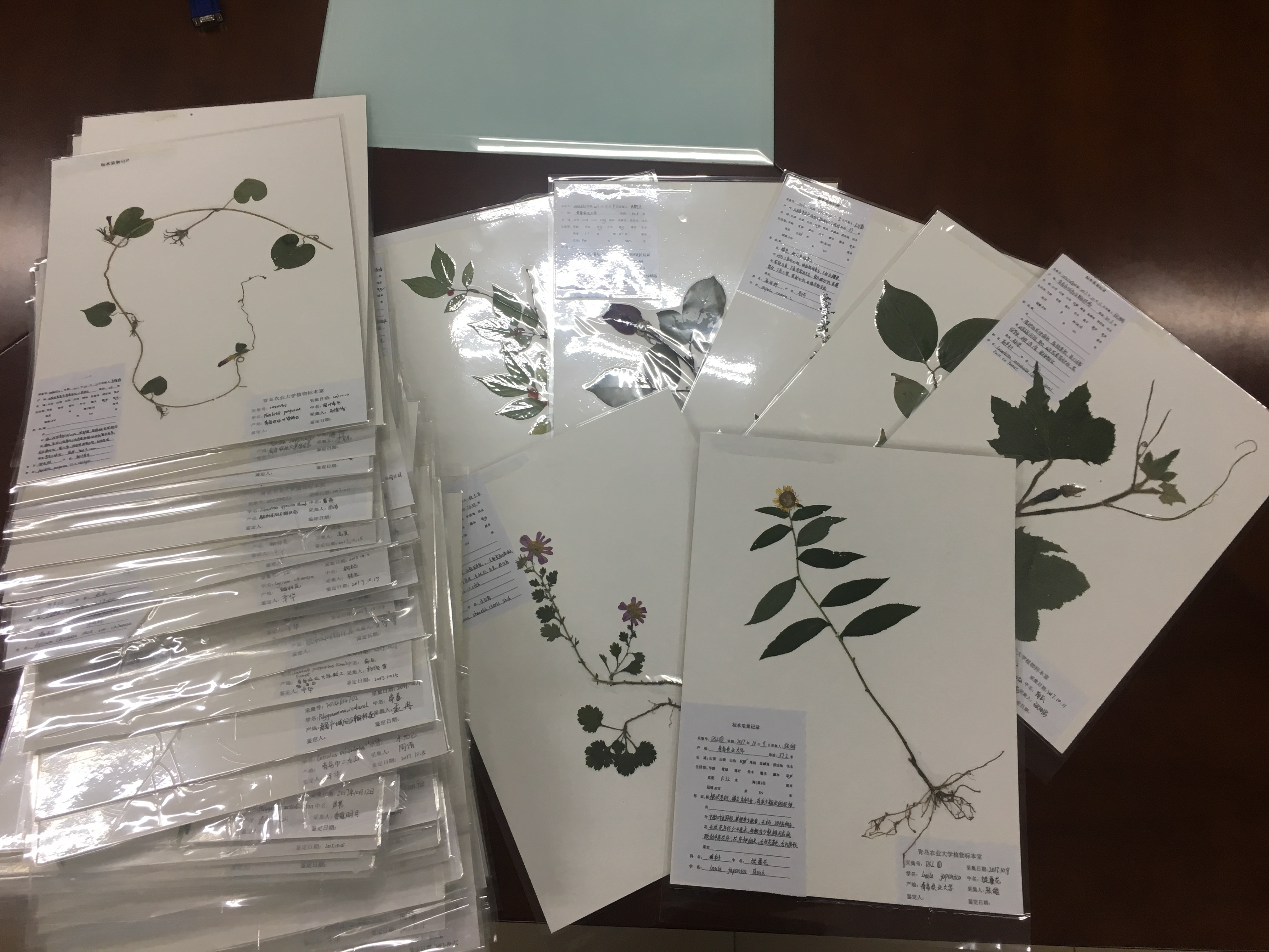 “斑斓植物界,多彩中草药”,自2017年10月份起,农学院学生在植物科学与技术专业负责人邹晓霞的指导下,共采集制作银杏、桂花、艾草、木槿等常见中草药标本百余件。在标本制作过程中,注明了中草药植物的产地、海拔高度、植物的形态及所属科目等基本信息,丰富了知识,也唤起大家关注植物,认知植物的药用价值的兴趣。同时,对中草药植物标本进行了拍摄、建立档案和制作宣传册等工作,为开展首届“青岛农业大学中草药植物展”打下了坚实基础。