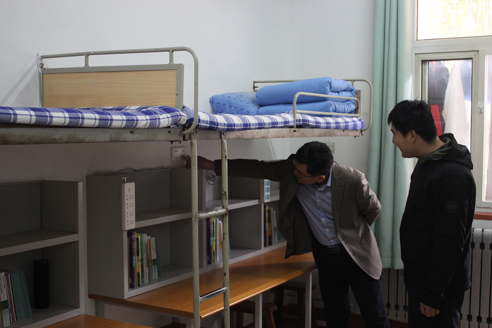 11月6日,管理学院组织进行宿舍安全隐患大排查,学院党委副书记、副院长、学工办主任焦磊、辅导员曹山及舍管部负责人等巡查宿舍。