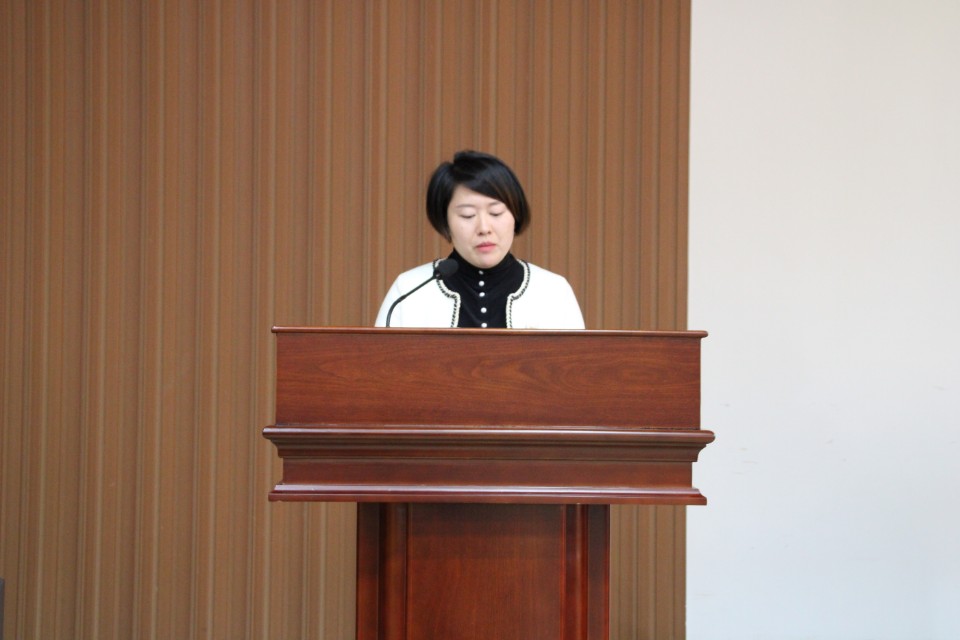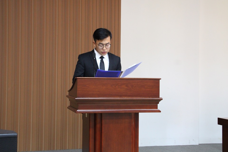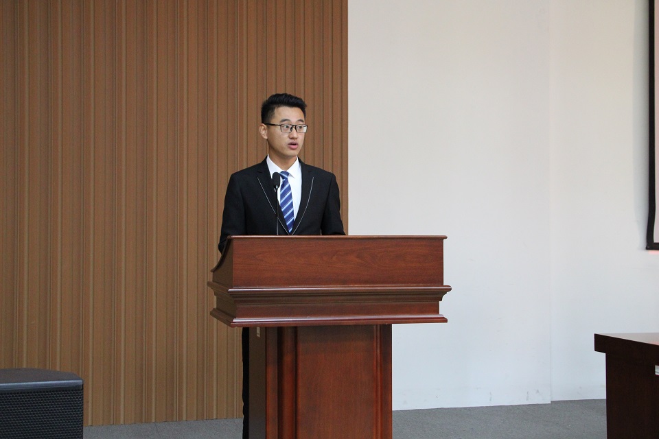 2017届学生会主席王政发言,他首先对学院老师和全体同学的支持与帮助表示感谢,然后对过去一年的工作进行总结并与新一届学生会成员交流工作心得。王政希望新一届学生会全体成员端正工作态度,踏踏实实为老师、同学服务;在学习和工作中严格要求自己,既要做好“学生”,又要做好“学生干部”;处理好与班级、老师以及身边同学的关系。