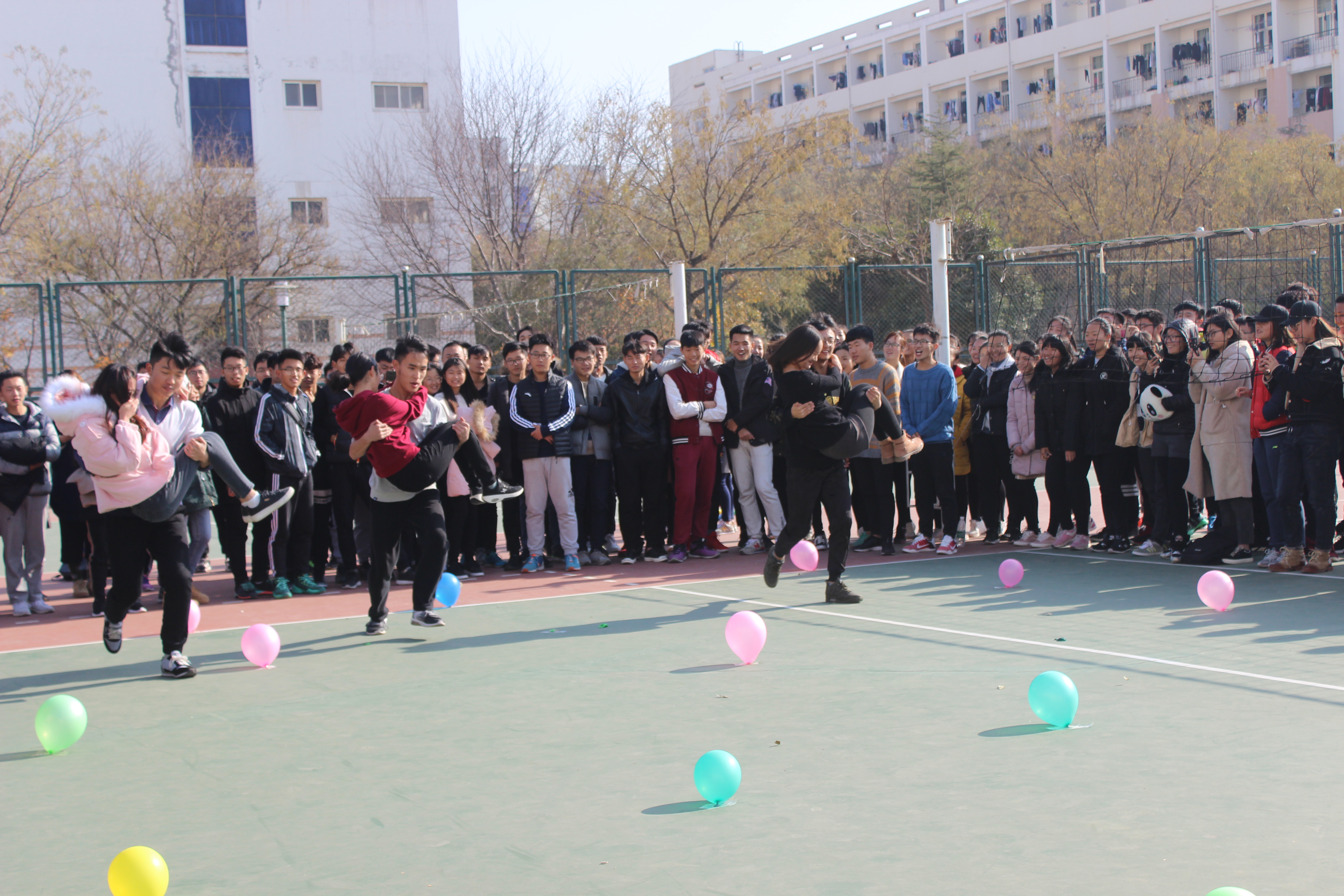 男生女生向前冲是本次比赛最具创意的游戏,它要求前半程男生抱着女生、后半程男生背着女生。随着哨声的响起,参赛选手矫健而迅速冲出起跑线,同学们的欢呼也一阵高过一阵,比赛现场十分激烈。