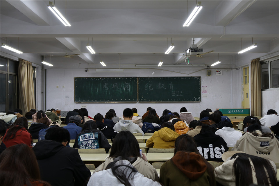为进一步加强学风建设,严明考试纪律,提高学生自律意识,营造良好的复习、考试氛围,11月5日,动漫与传媒学院在教学区B区组织开展“考风考纪教育”主题团课活动,全体17级学生参加。
