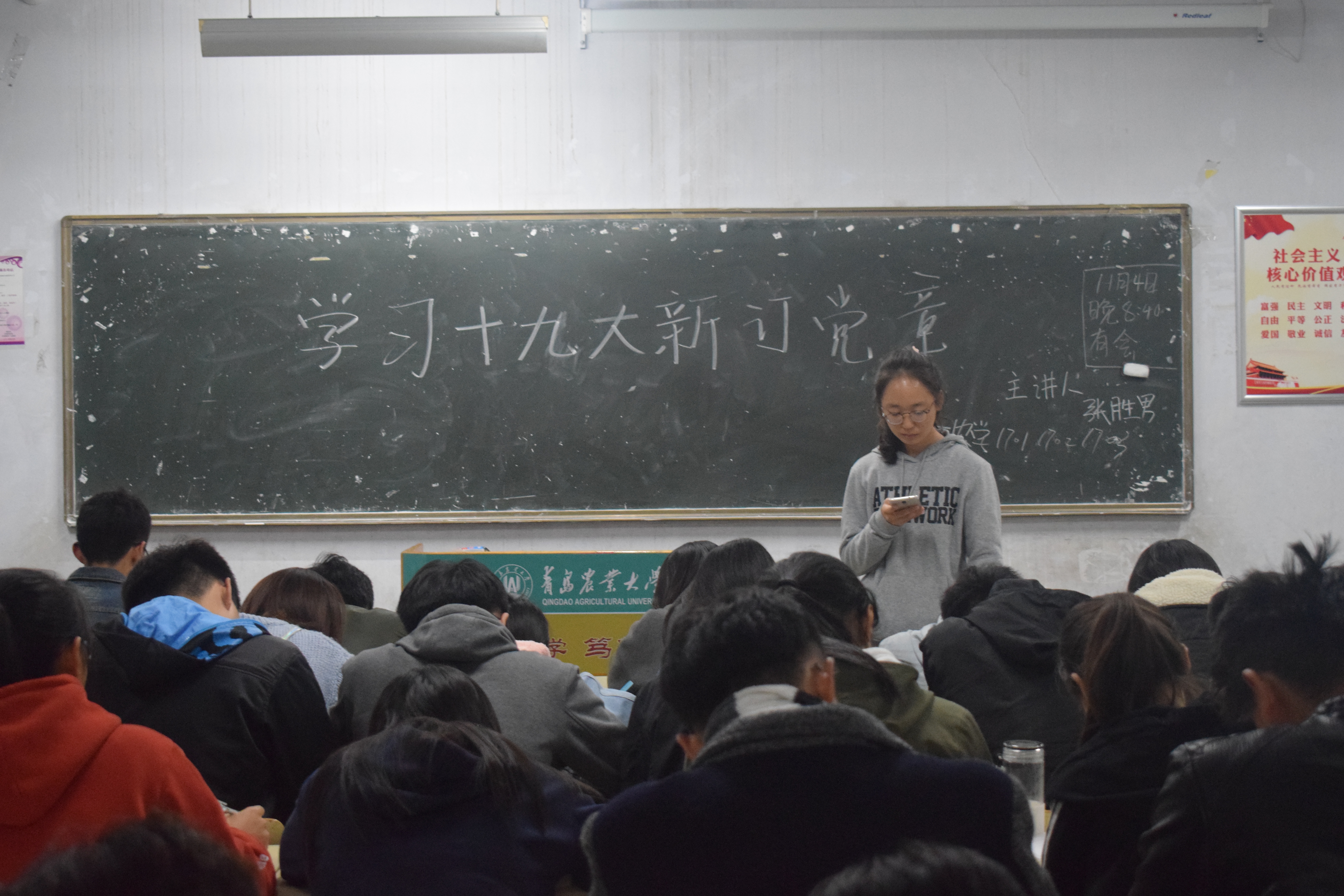 为了充分学习贯彻十九大精神,发挥团组织教育青年的功能,11月5日,农学院在教学楼C区开展“学习十九大新修订党章”主题团课,2016级和2017级全体同学积极参加。