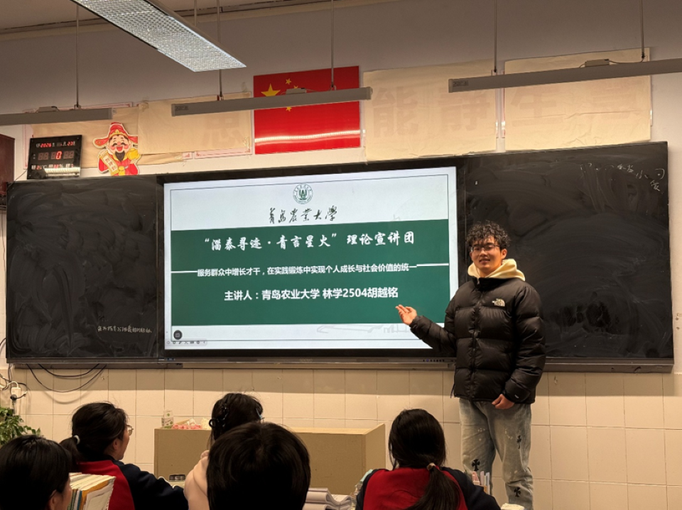 薪火相传守初心,以学赋能育新人。学院多支实践团队以校地衔接、专业宣讲、升学指导为核心,搭建高校与高中的沟通桥梁,用所学所知为学弟学妹点亮成长之路。园林与林学院“淄泰寻迹,青言星火”实践服务团重返母校,聚焦地理信息科学、遥感技术、城市林业与景观学等专业,开展青农特色学科分享讲座,围绕学业规划、专业选择、校园生活答疑解惑,覆盖 6所中小学、服务 350 余名学生,以 “以己所学,回馈母校” 践行青年责任;青农引航团走进山东省实验中学,设置宣讲咨询点位,全面介绍青农办学特色、招生政策,结合自身经历分享备考经验、成长心得,一对一为学子解答升学困惑,以 “薪火相传,筑梦前行” 的信念,助力高中学子明确发展方向。