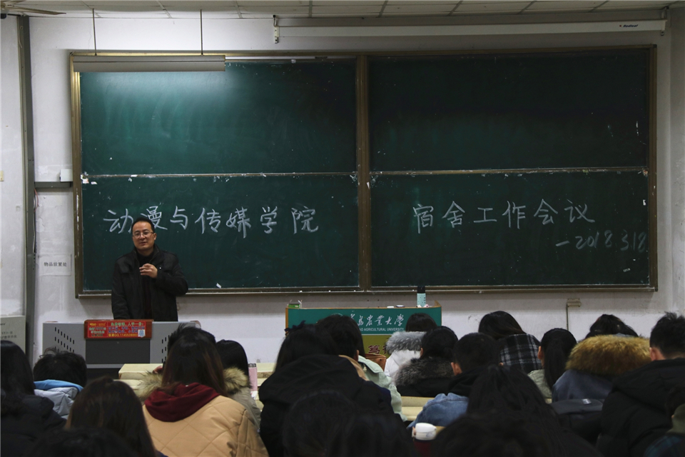 3月18日,动漫与传媒学院在教学区D区召开宿舍工作会议,学院分团委书记王宏儒主持会议,学院全体宿舍长及学生干部参加会议。