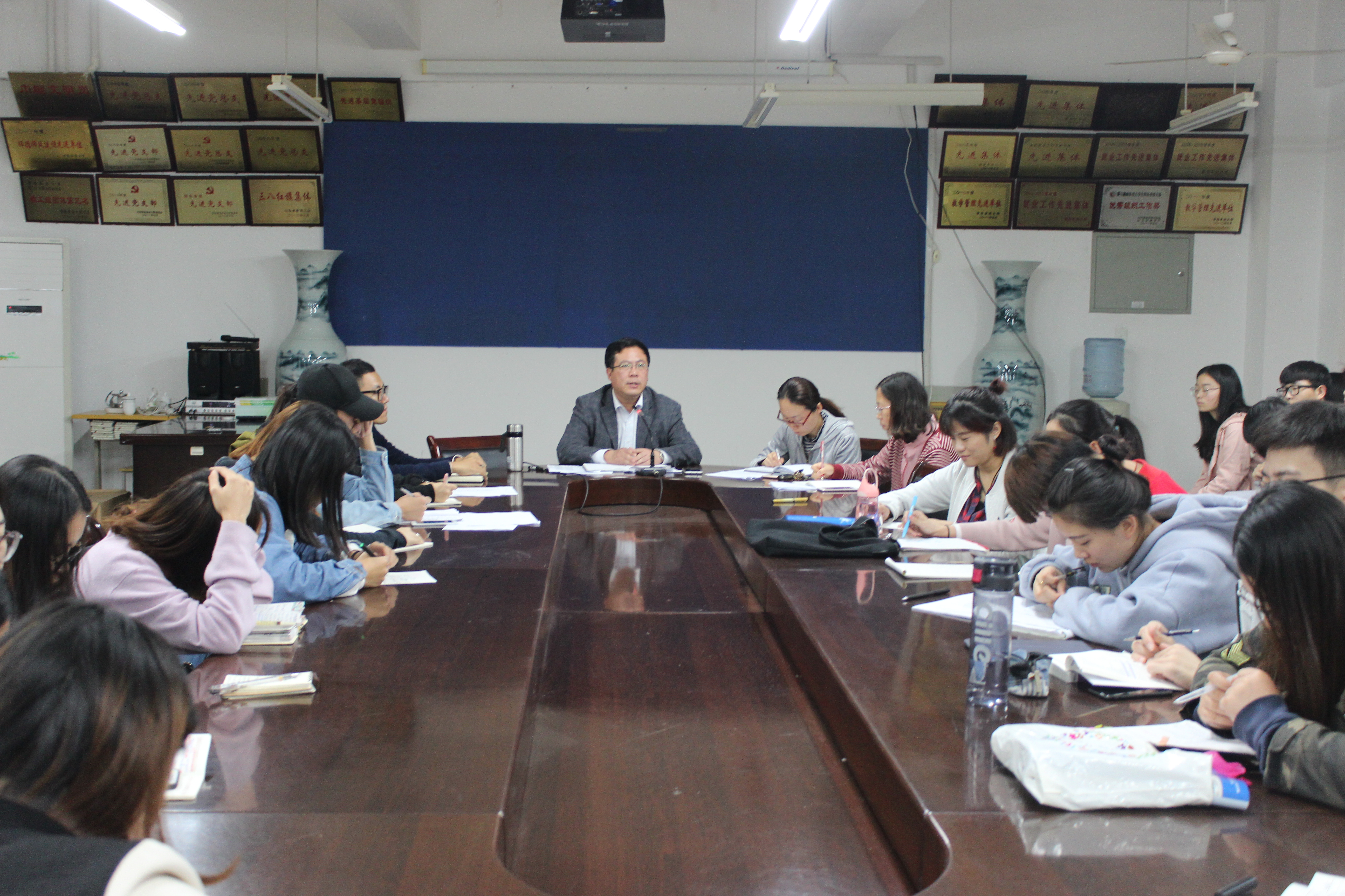 10月 12日,外国语学院于文经楼资料室召开学生工作部署会议,学院副党委书记王晓雷、团委书记嵇安奕、正科级辅导员刘艳出席会议,各班班长书记及学生会各部部长参会。本次会议由王晓雷主持。