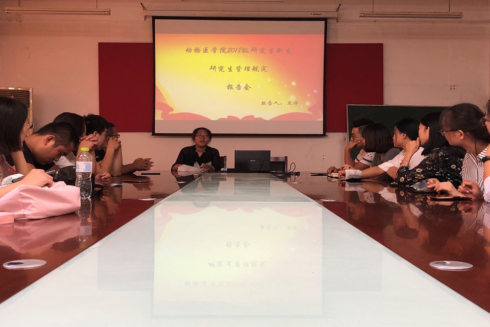 为了让研究生新生更深入的了解学校和学院,更全面的了解研究生一年级学生工作的管理,更快的适应研究生的生活与学习,动物医学院于9月4日至9月6日开展了2018级研究生新生的入学教育活动。其中包括了专业教育专题报告会、科学道德和学风建设宣讲教育报告会等一系列会议。院长助理李桂梅、研究生辅导员王洋和研究生秘书魏永梅出席会议。