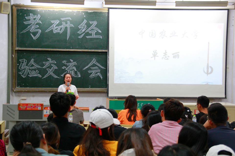 14级考研优秀代表结合自身经验,详细介绍了各科目的复习技巧和应试技巧。单志丽,成功考入中国农业大学,在她的经验交流中就学校对考研要求等方面做出具体分析,重点强调了英语的重要性,建议同学们要多背单词,提高英语水平;考入扬州大学的王奕婷在“复习准备、复习过程、复习资料、复习方式”等方面向同学们进行了的介绍,并且向大家讲述自己通过微博等心新的方式进行考研复习;考入东北农业大学的杨乃喜提到可以找合拍的研友一起复习,大家相互督促彼此鼓励,以此来提高学习效率并成为自己奋斗下去的支持。他们纷纷表示,考研首先要有一个明确的目标,确定好考研的学校,及时关注所报考学校有关考研的信息,并为根据自身情况制定合适的学习计划。