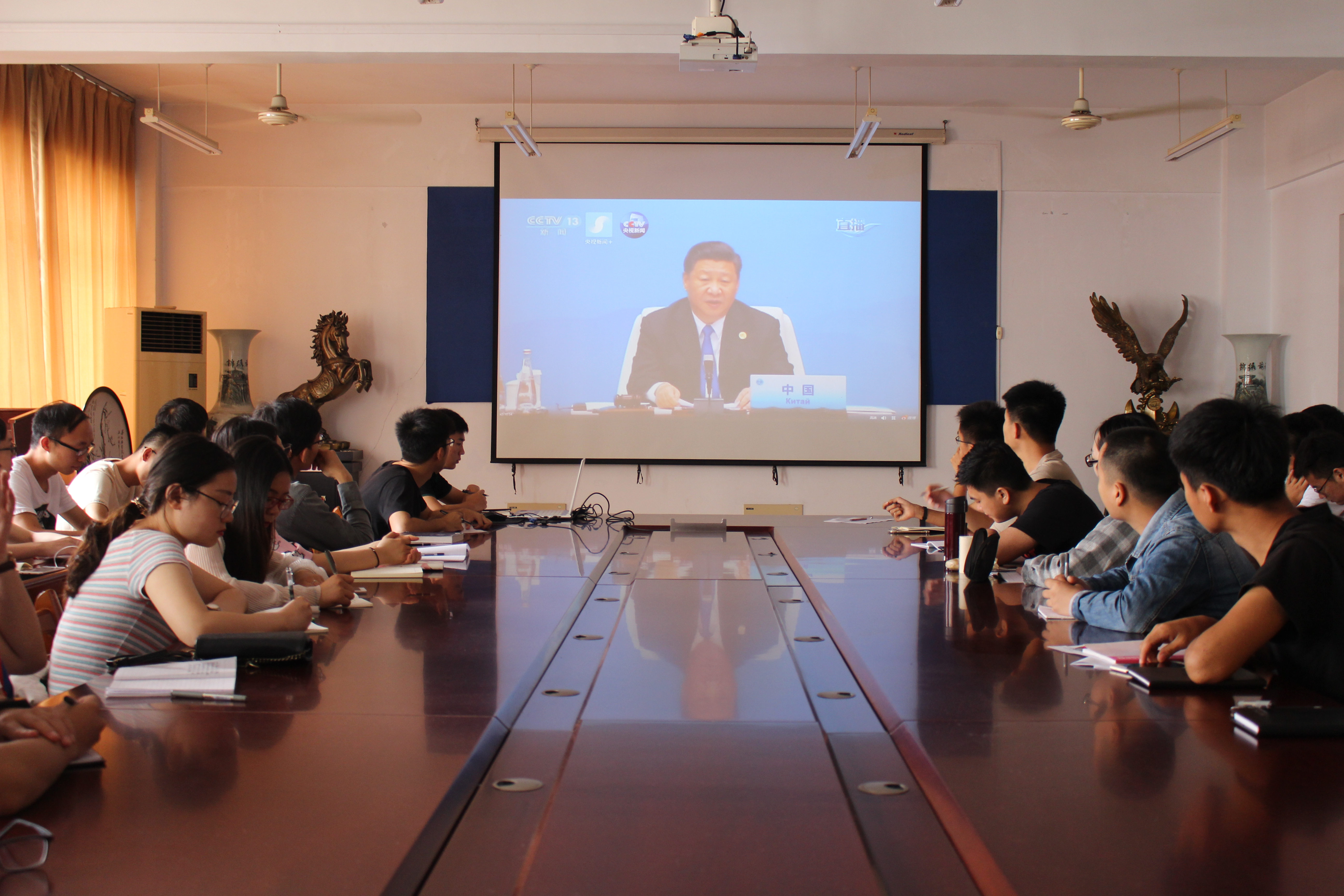 通过收看直播,全体学生党员学习了解了上海合作组织的发展历史和本次青岛峰会的重要意义。学生党员于鑫鹏表示:“17年春华秋实,上海合作组织走过了不平凡的17年,作为一名大学生,我为能见证这一伟大时刻感到自豪,我愿用实际行动积极投身祖国建设发展的伟大事业,为祖国的发展贡献青春力量。”