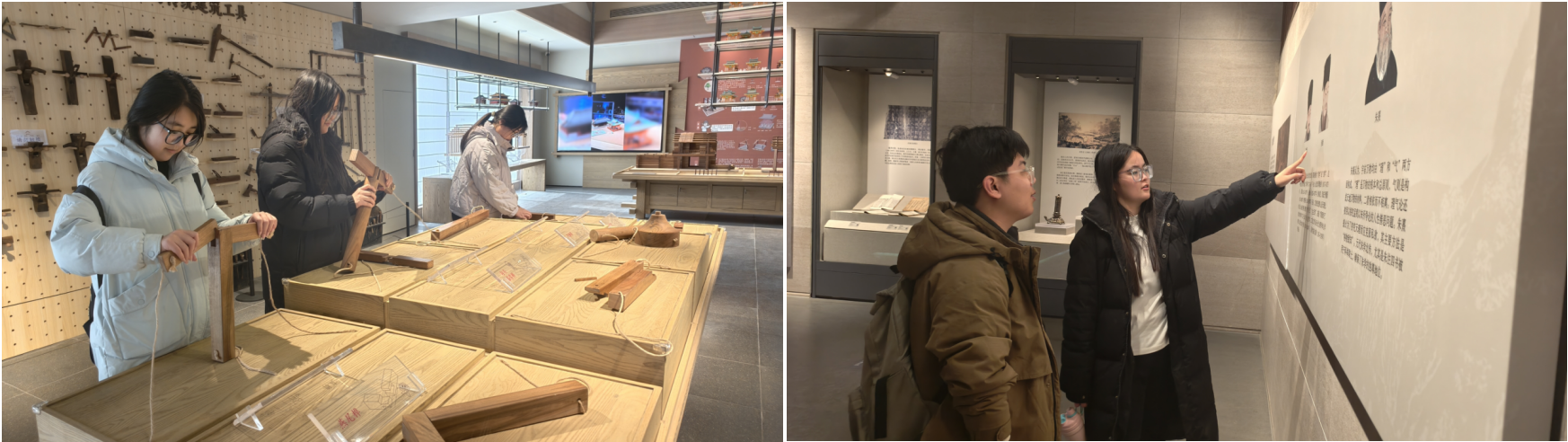曲阜作为孔子故里,承载着深厚的文化底蕴与旅游发展潜力,并在2023年入选全国休闲农业重点县。实践团首站走进尼山圣境,在巍峨的孔子像前,队员们不仅感受到儒家文化的庄重肃穆,更关注景区如何将文化资源转化为旅游产品,带动周边乡村发展。随后,团队走访了依托尼山文旅发展的鲁源村,该村以“儒风乡韵”为主题,打造了一批特色民宿与文创街区,队员们沉浸式体验了非遗纺织扎染工艺,非遗建筑榫卯,论语撰写等活动,欣赏了演出《金声玉振》《子贡尊师》,在非遗体验中体会曲阜特色文旅与传统文化的魅力。