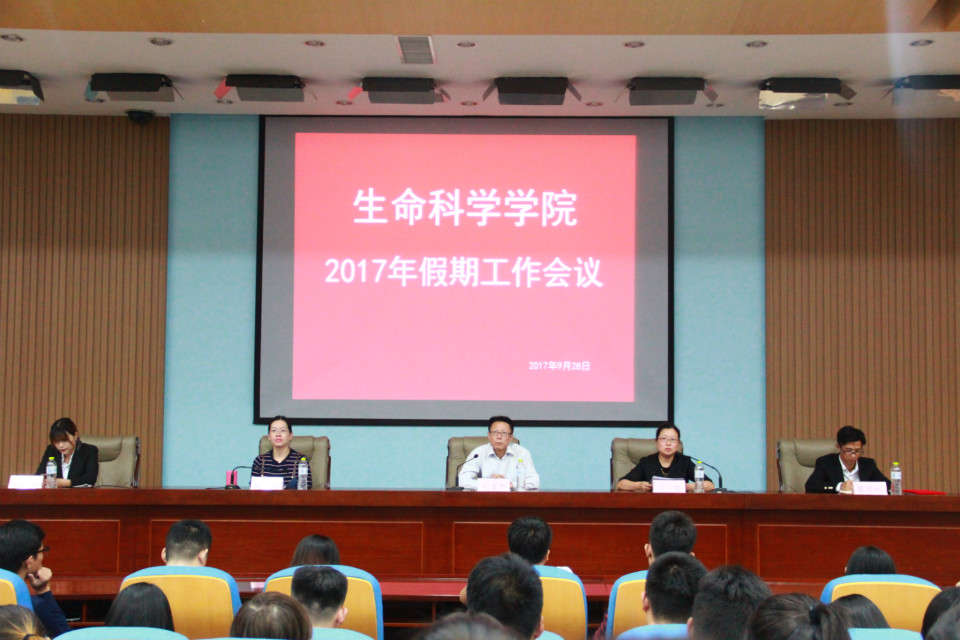 9月28日,生命科学学院在学术会馆召开假期安全会议,学院党委副书记、学工办主任初文杰、院团委书记王敬、正科级辅导员祁琳出席了此次会议,各班班干部、学生会全体成员以及2017级全体成员参加了此次会议。