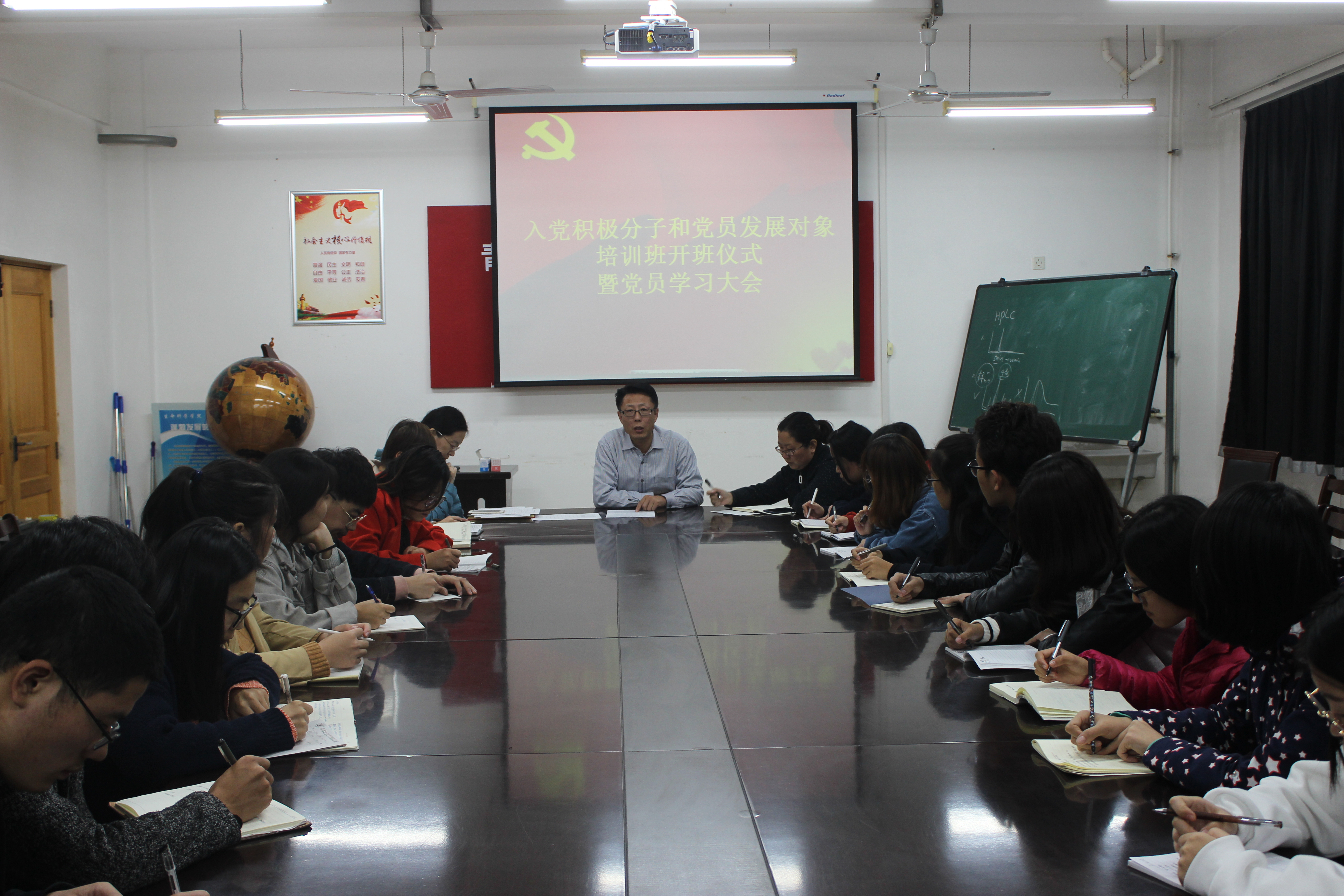 11月1日,青岛农业大学生命科学学院在生物楼资料室召开入党积极分子和党员发展对象培训班开班仪式暨党员学习大会,组织党员和入党积极分子、党员发展对象集中学习。学院党委副书记初文杰、团委书记王敬和正科级辅导员祁琳出席此次会议。