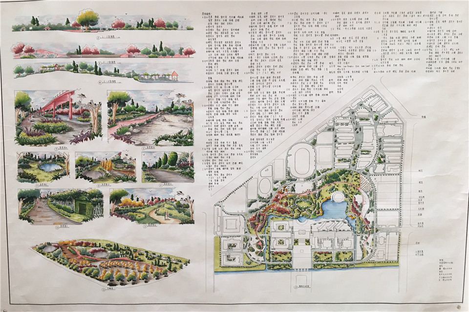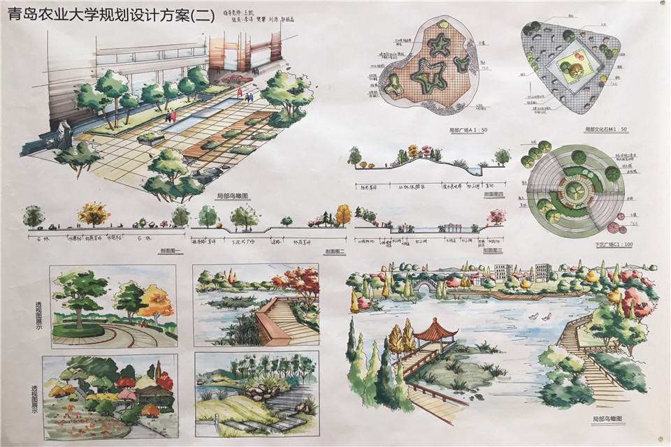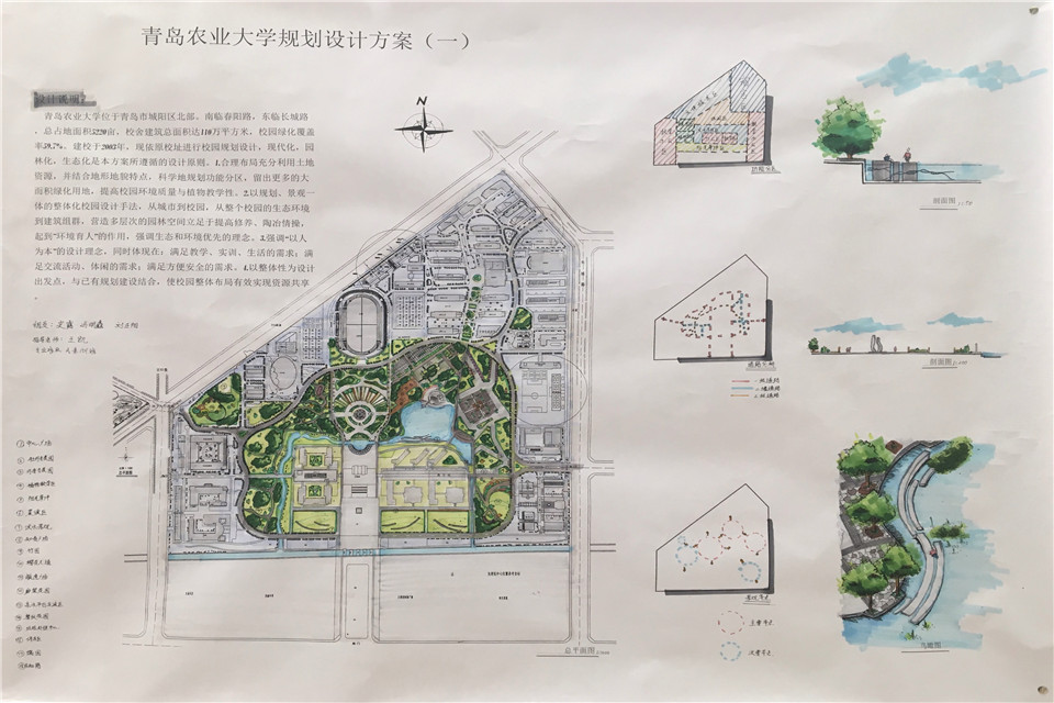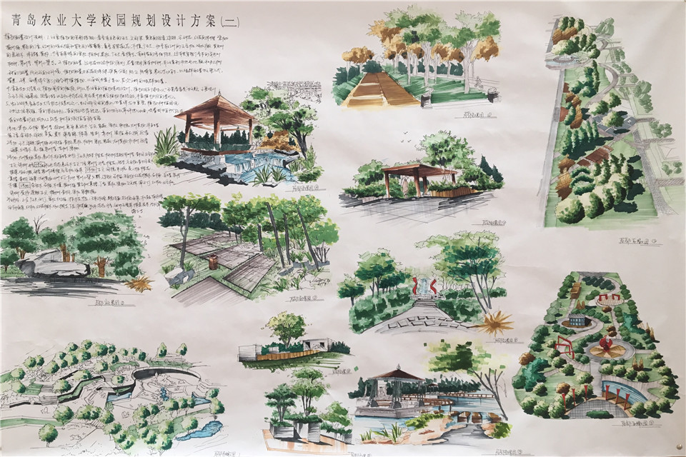 本次大赛着眼于学校的可持续发展,对校园开放空间进行整体景观规划。按照三季有花、四季常青的指导思想,对校园不同绿化区域的植物种类、群落结构进行调整,对植物景观进行重新规划;在现有的交通条件下,完善交通系统。所展出的20组作品由王凯等专业教师从众多设计作品中优中选优而来。其设计理念尊重校园文化和历史文脉,能反映学校整体形象,传承历史文化,体现大学精神。