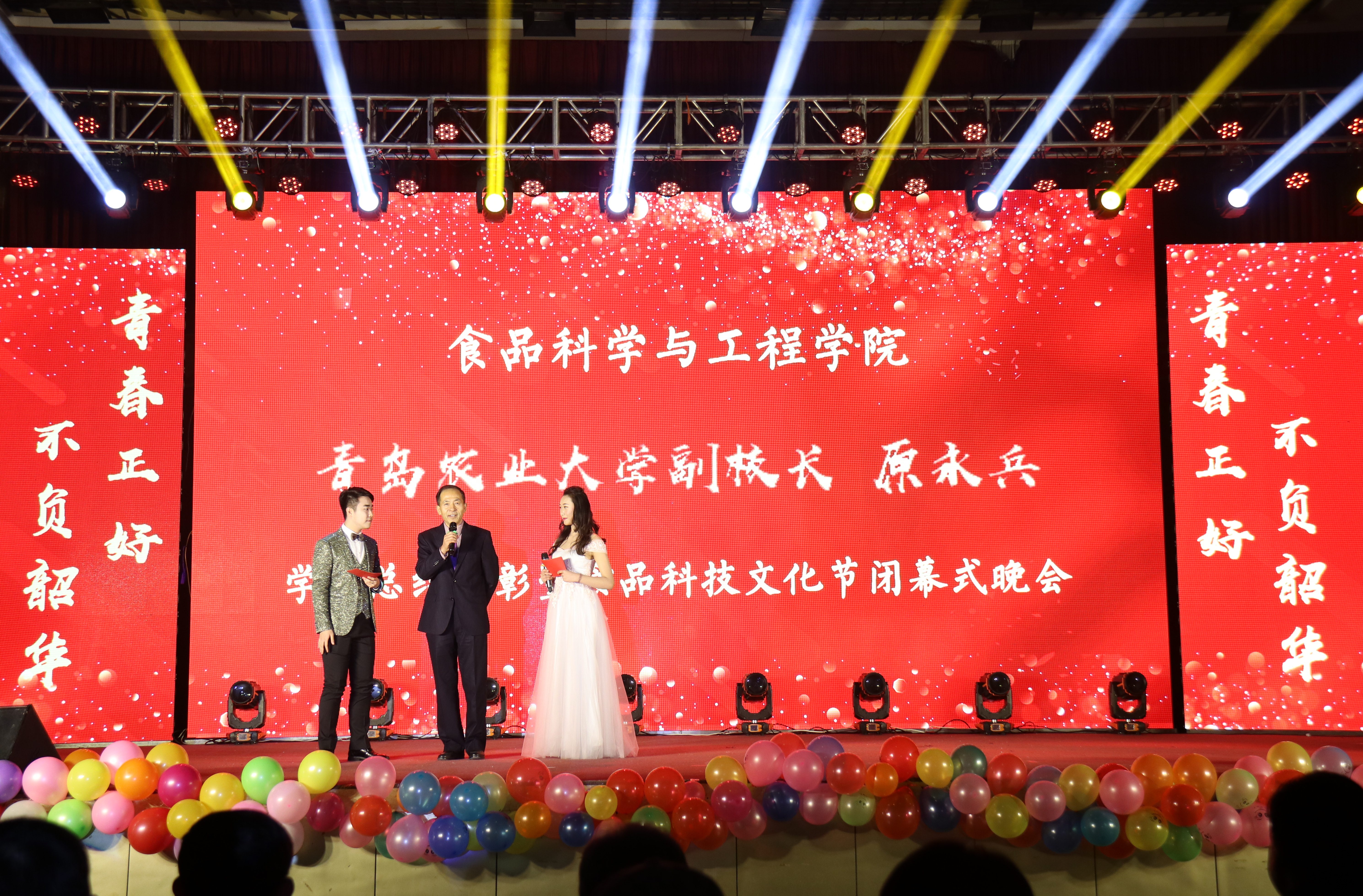 12月16日,青岛农业大学食品科学与工程学院学年总结表彰暨食品科技文化节闭幕式晚会于文体馆隆重举行。副校长原永兵,原莱阳农学院副院长、食品系第一任系主任蔡德华,学院92级到05级校友代表以及在学院工作过的老师,校工会、教务处、学工部、团委、后勤服务产业集团、后勤管理处等部门负责人,学院党政领导及全体师生欢聚一堂,共同观看了晚会。