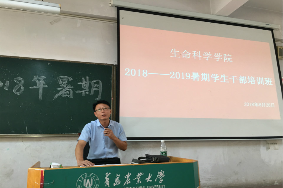 8月26日上午,青岛农业大学生命科学学院举行新学期学生干部培训会,院党委副书记初文杰老师、院团委书记王敬老师,正科级辅导员祁琳老师出席会议,学院全体学生干部参加会议。