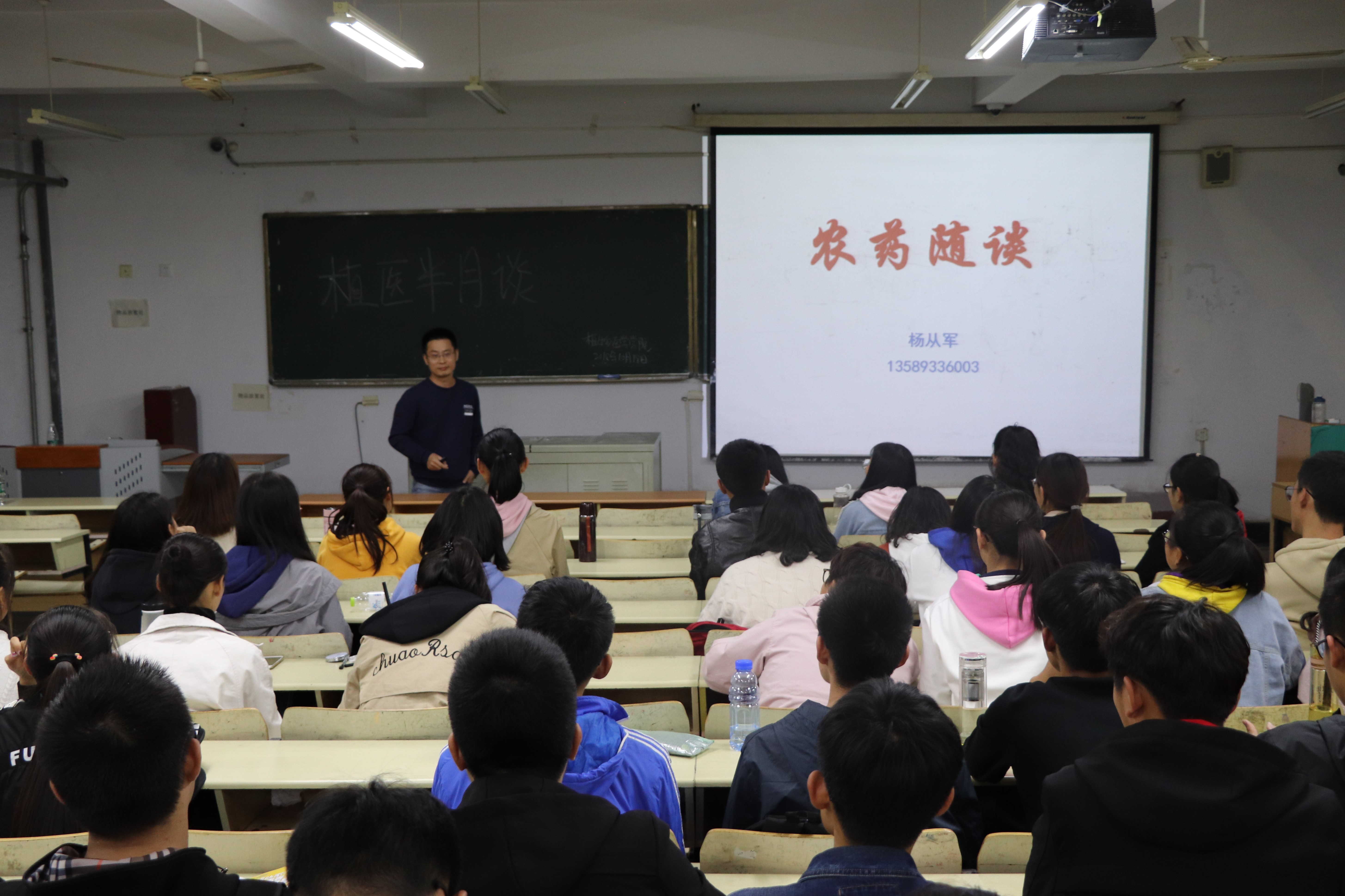 杨从军老师与同学们进行农药随谈,主要讲述了农药的研究领域以及农药在农业上的应用。测定土壤农药残留量,农药毒力测定等,都是属于农药研究方向所需要掌握的技能,他表示,农业是第一产业,而农药对于农业生产至关重要,尤其是农药安全性以及残留方面的问题,更是农药研究的重要课题。