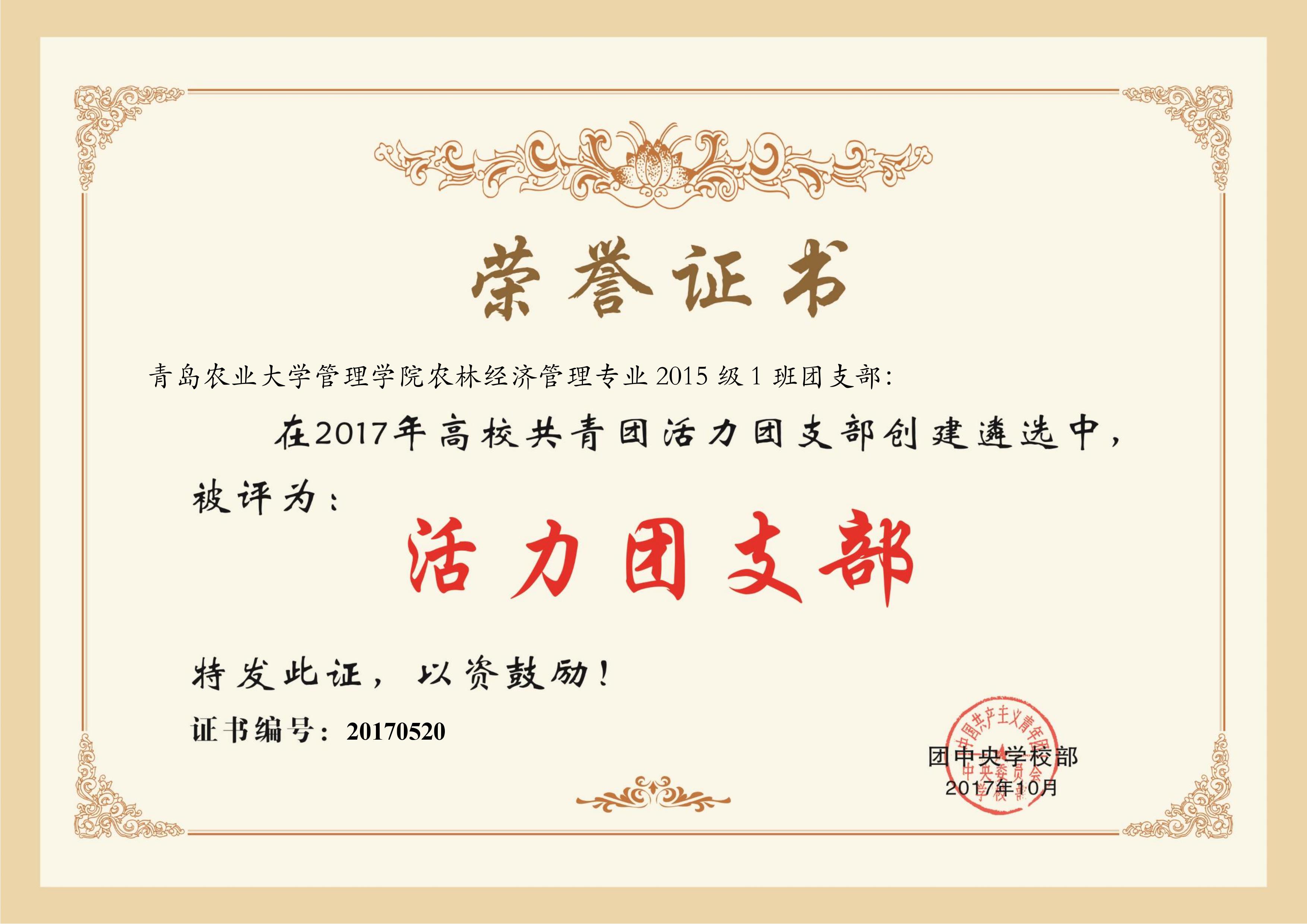 近日,团中央公布了2017年全国高校共青团“活力团支部”名单,青岛农业大学管理学院农林经济管理专业2015级1班团支部光荣入选。该班级还曾在2016年度荣获“山东省先进班集体”。