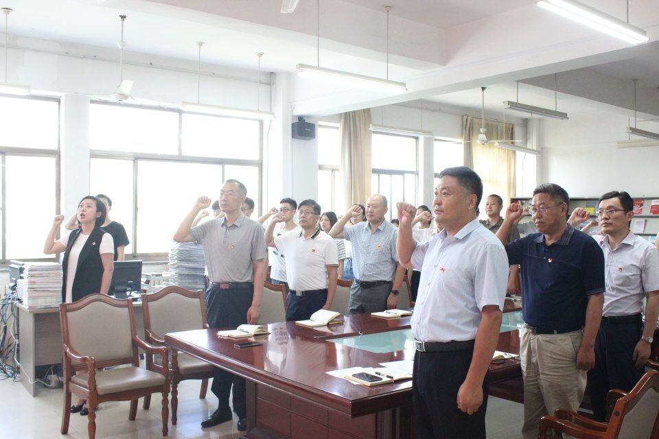 随后,由张洁带领全体党员重温入党誓词,所有人面向鲜红的党旗庄严肃立,共同宣誓:“我志愿加入中国共产党,拥护党的纲领,遵守党的章程,履行党员义务,执行党的决定……”铿锵有力的声音表达了身为共产党员的自豪感和使命感,展示了全体党员为党和人民的事业奋斗终身的不变理想和追求。