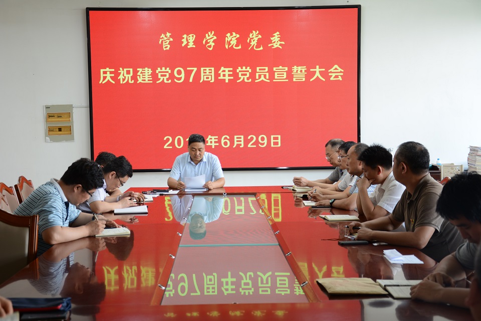 6月29日,青岛农业大学管理学院党委庆祝建党97周年党员宣誓大会在文经楼会议室举行,管理学院领导班子、全体教职员工以及学生党员参加了此次宣誓大会。