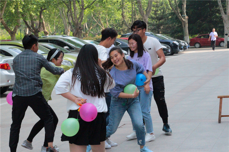 5月13日,青岛农业大学化学与药学院在科技楼前空地进行“环环相扣,最美邂逅”活动,学院17级六个专业派代表队参加。活动通过“球球大作战”、“牛郎织女”、“皮皮虾,我们走”等小游戏,让同学们在欢声中散发青春活力,在配合中体悟团队精神,得到锻炼、收获成长。