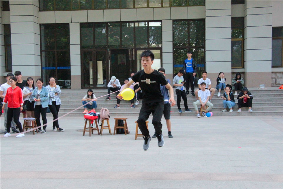 “皮皮虾,我们走”实现专业代表队员总动员,女生吹气球,男生负责完成跳大绳、运气球、指定地点挤破气球三个项目。女生们深吸一口气、全力吹气球,男生们鱼贯般成功跨越障碍、奋力护送气球、在目的地挤破气球。十八个颜色各异的气球,映衬着女生们的脸颊愈发红润;队友的加油声,鼓励着男生们的脚步愈渐矫健。