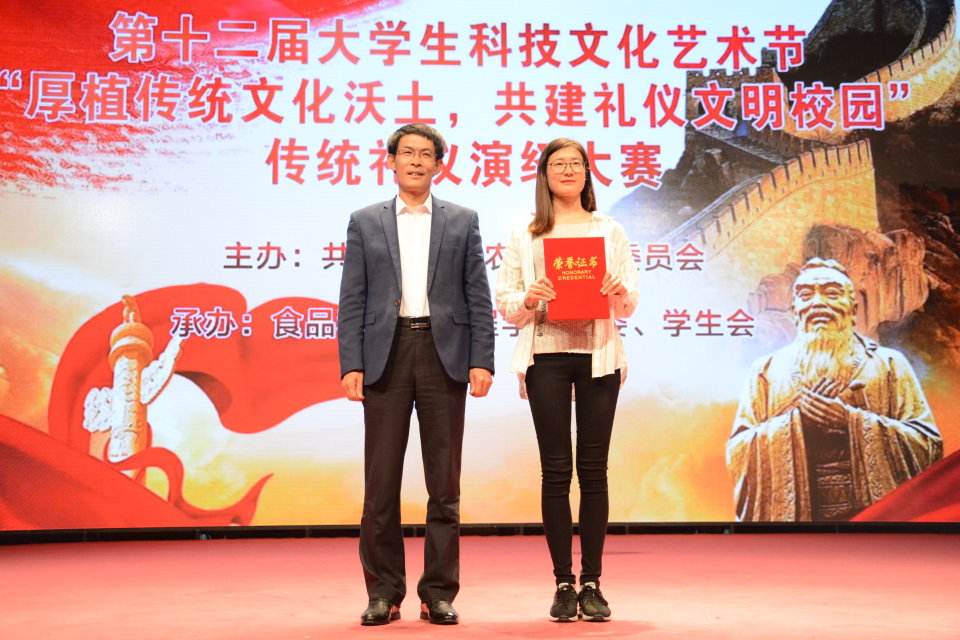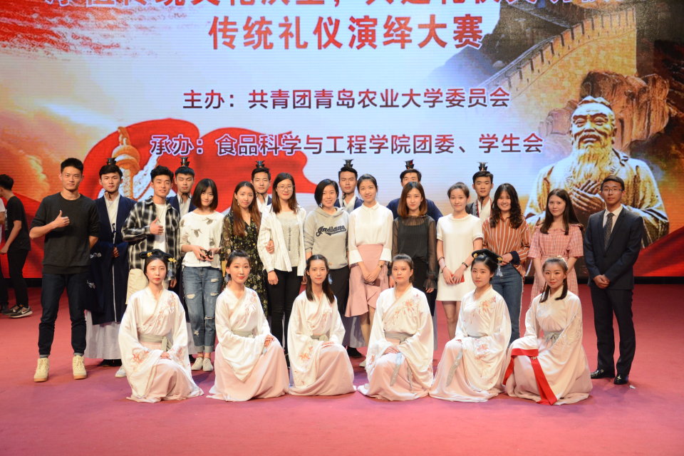 5月13日,第十二届大学生科技文化艺术节“厚植传统文化沃土,共建礼仪文明校园”传统礼仪演绎大赛决赛在文经楼演播大厅举行,大赛由共青团青岛农业大学委员会主办,食品科学与工程学院团委、学生会承办。管理学院在进入决赛的10支队伍中脱颖而出,荣获一等奖。