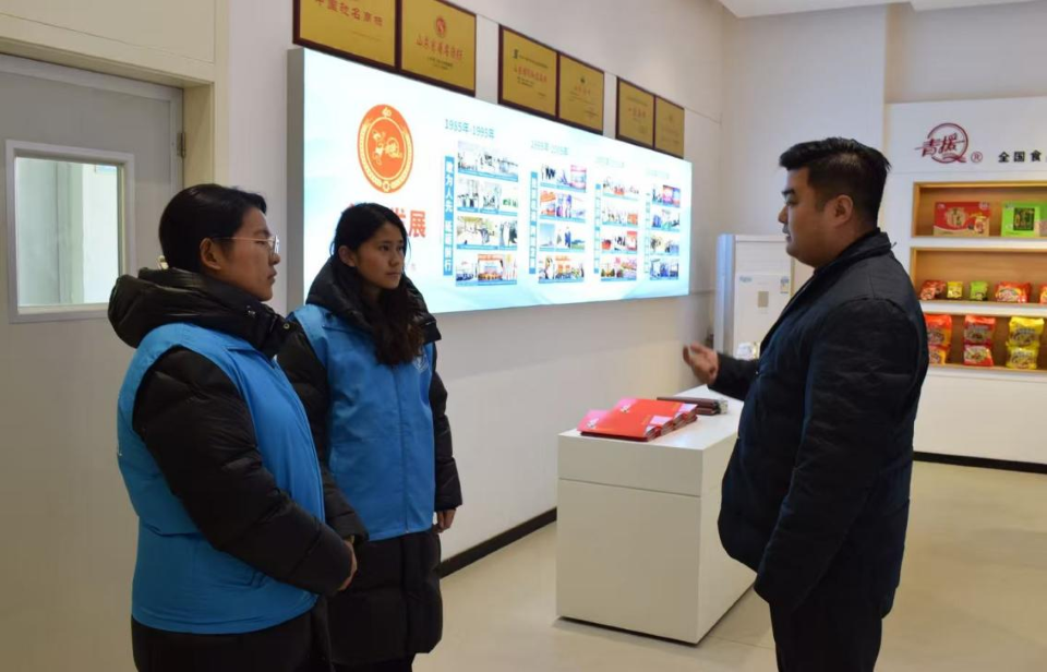 在山东诺好佳食品有限公司,实践团成员了解到企业在产品创新和品牌建设方面的努力。公司负责人石佳鑫表示:“我们注重产品的品质和口感,同时也在不断提升品牌形象,希望通过优质的产品和服务,赢得消费者的信任和认可。”