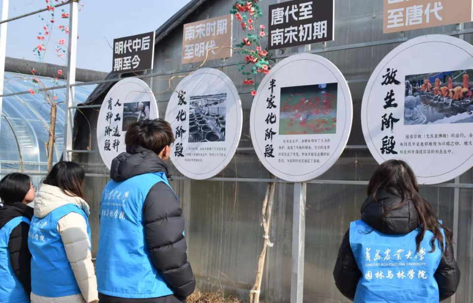 随后,实践团成员参观了苗氏金鱼养殖基地。在参观过程中,同学们了解到苗氏鱼圃在水产养殖中注重生态环保与可持续发展,还将园林景观设计融入鱼圃规划,打造出一个集水产养殖、生态观光、休闲娱乐于一体的综合性园区。