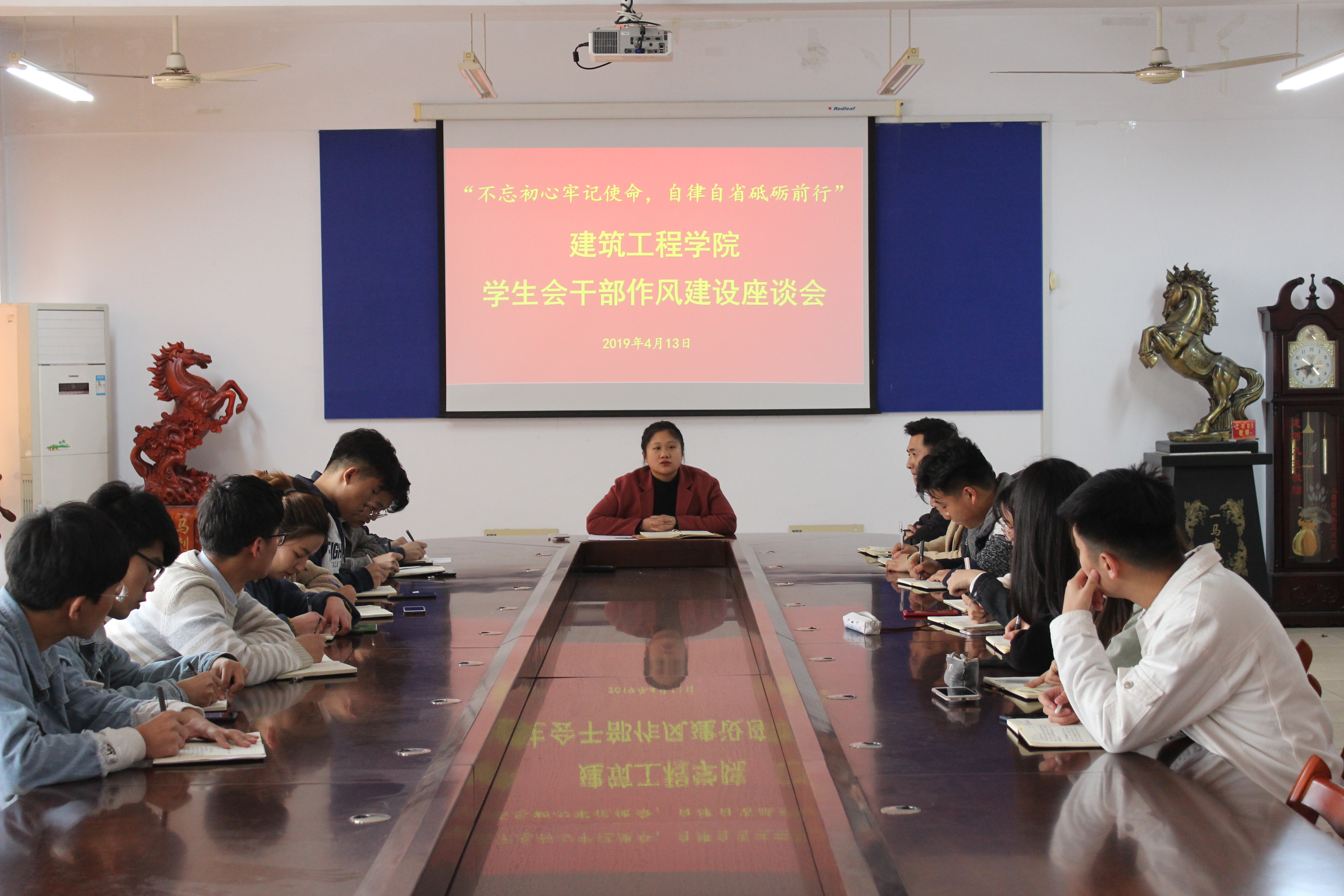 4月13日,青岛农业大学建筑工程学院在工程楼会议室召开“不忘初心牢记使命,自律自省砥砺前行”学生会干部作风建设座谈会,会议由辅导员林鑫主持,学生会主要学生干部参加。
