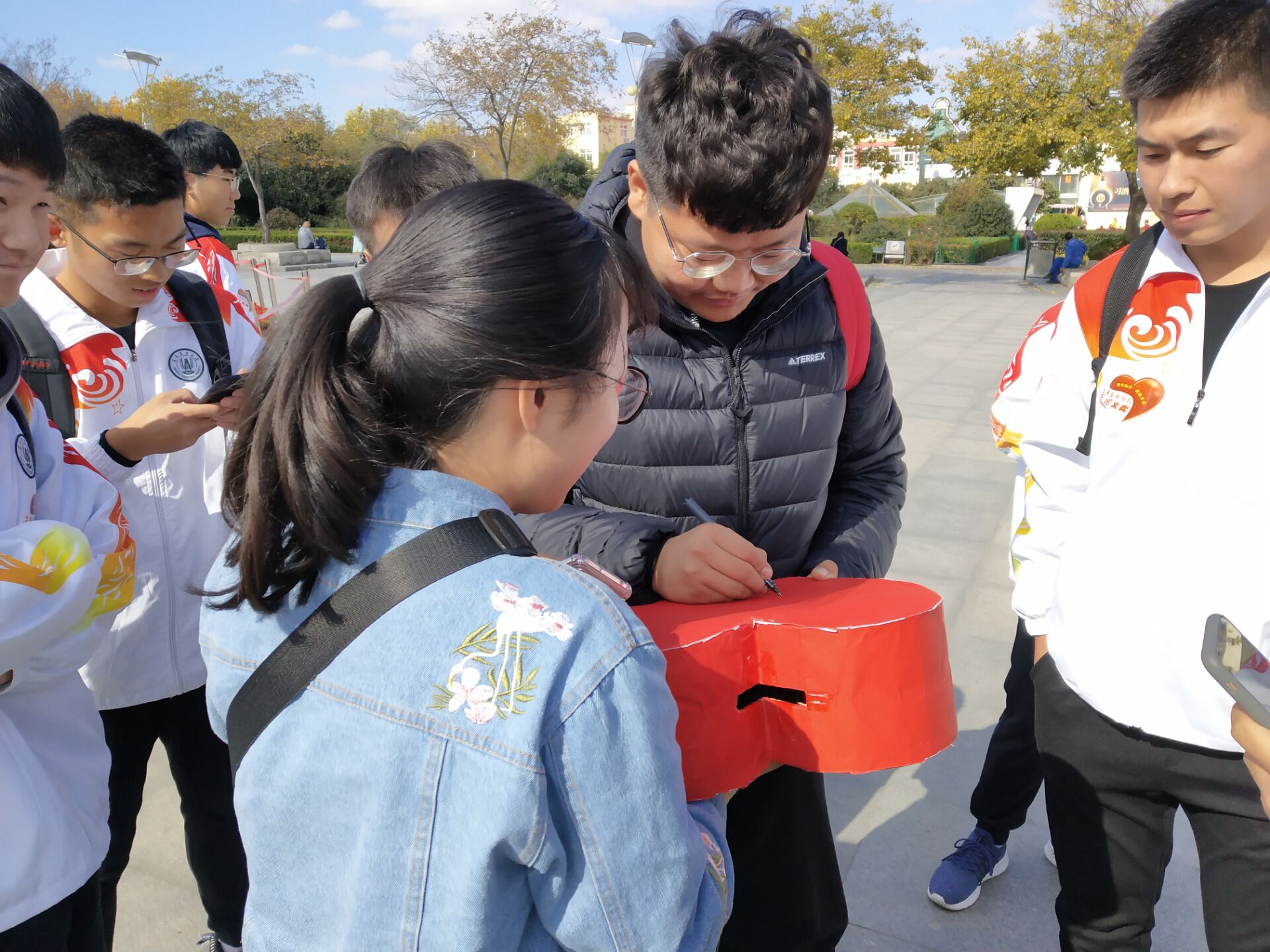 为了弘扬大学生的奉献精神,11月3日,机电工程学院举办爱心报纸义卖活动。