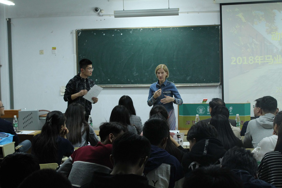 凯瑟琳讲述了参加中国马展时的所见所想,为17级同学介绍外教课学习的课程内容。她表示会尽最大努力为马科专业的学生传授马专业知识、提供实习机会。凯瑟琳希望同学们在学习专业课程的同时,加强对英语的学习,为将来出国学习做准备。