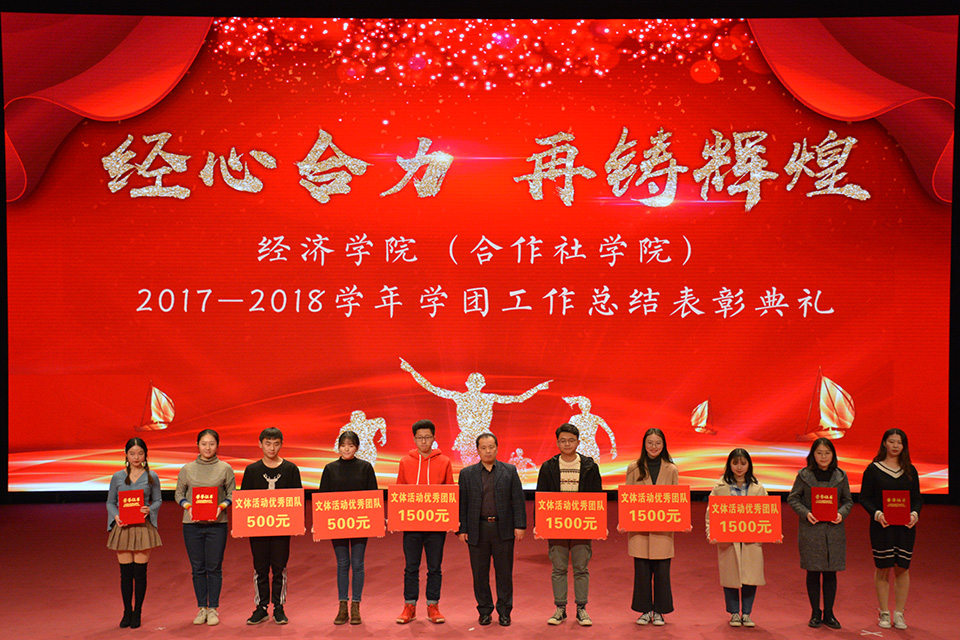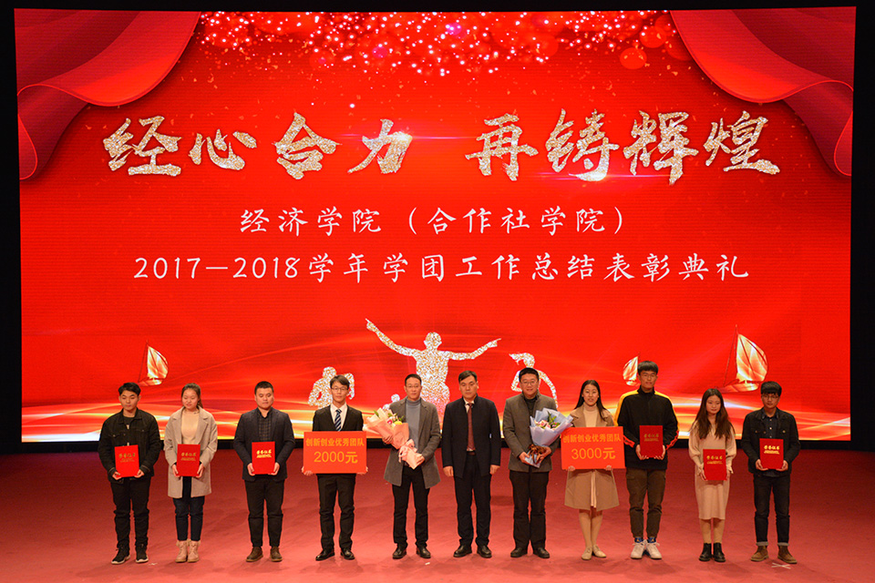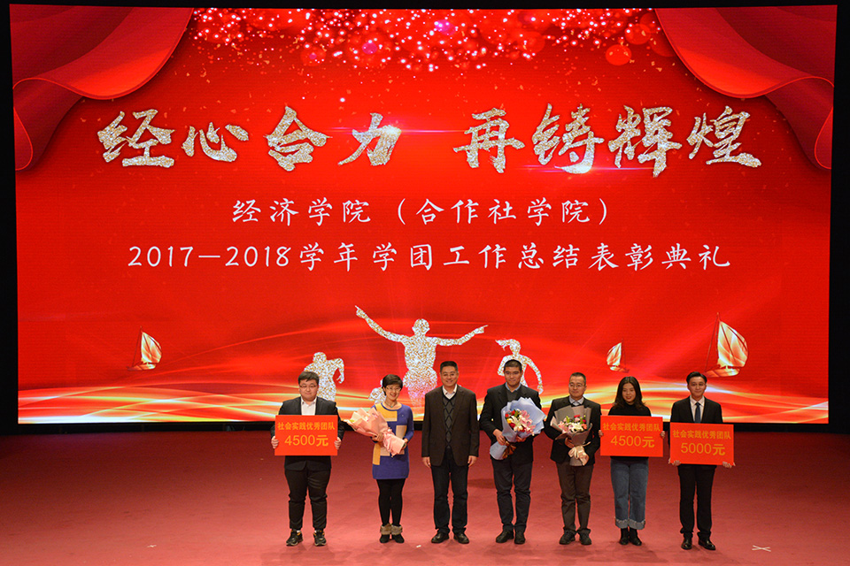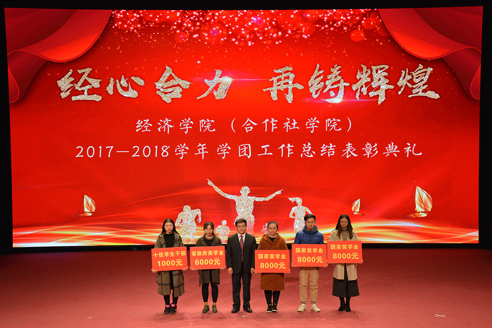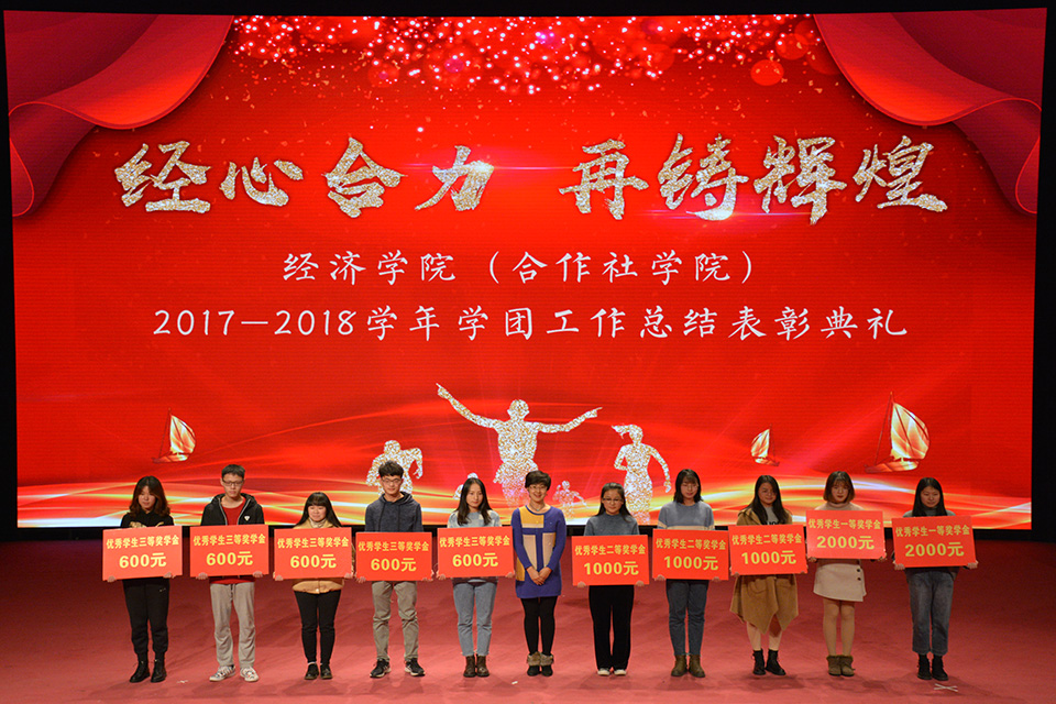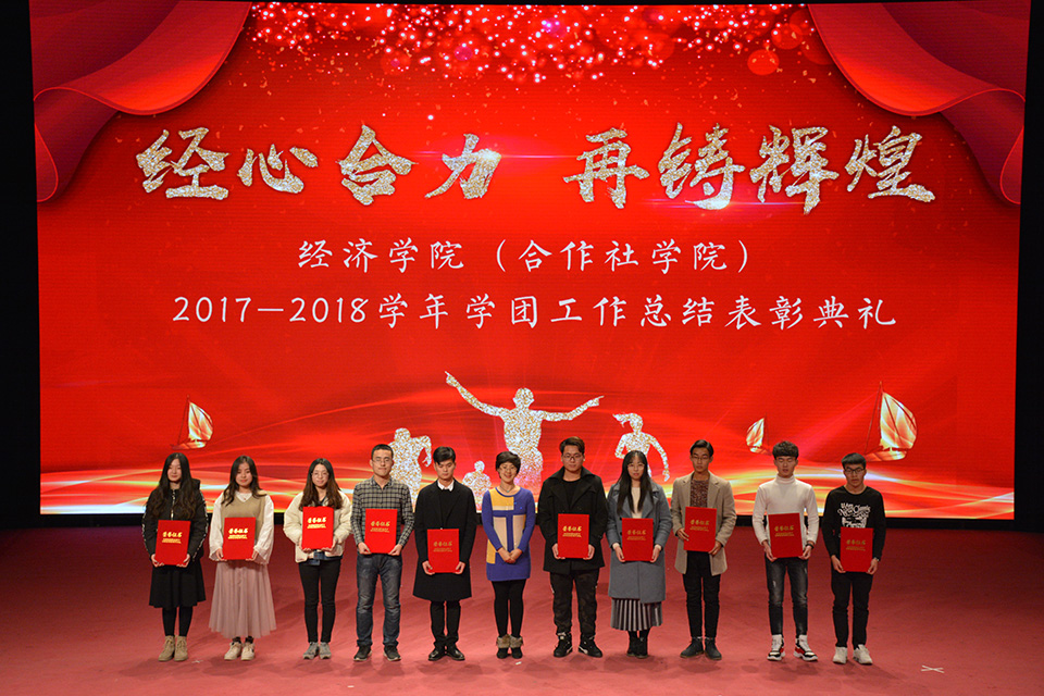 12月24日,青岛农业大学经济学院(合作社学院)在文经楼演播大厅举办“经心合力,再铸辉煌”2017—2018学年学团工作总结表彰大会。校党委委员、副校长牟少岩,校宣传部副部长孙广、校学工部副部长孙景福、校团委副书记王光炬,学院党政领导和学团干部出席表彰典礼。参加典礼的还有学院全体班主任和部分学生。
