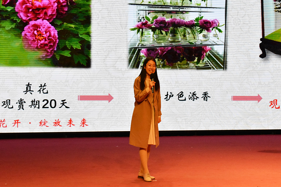 “寄语永生花”创业团队负责人谭一凡现场展示项目答辩