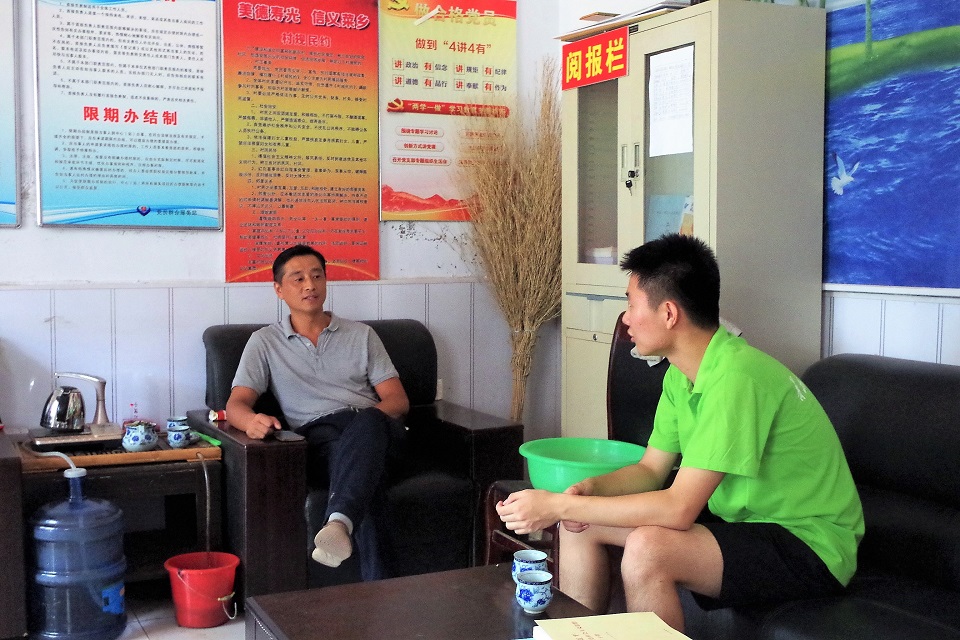 在西屯村村委会办公室,孙连国书记详细地描述了西屯村的农业发展历程,多年来的的改革发展、风雨兼程,依靠国家下发的新政策、新思想,换来了西屯村的脱贫致富。提到乡村振兴,孙书记表示:“乡村振兴要抓经济发展,才能提高村民生活水平,现在温室大棚不断建设,经济有了一定进步,乡村环境建设也不能落后,一定更要从‘美丽乡村’建设入手,抓好乡村文化建设和乡村环境建设,带领村委成员和村民学习十九大精神,了解新农村政策,改善村民生活环境。”他还提到,西屯村将结合政府政策,以蔬菜大棚为特色,依据“生态文明”的发展理念,初步打造观光农业。