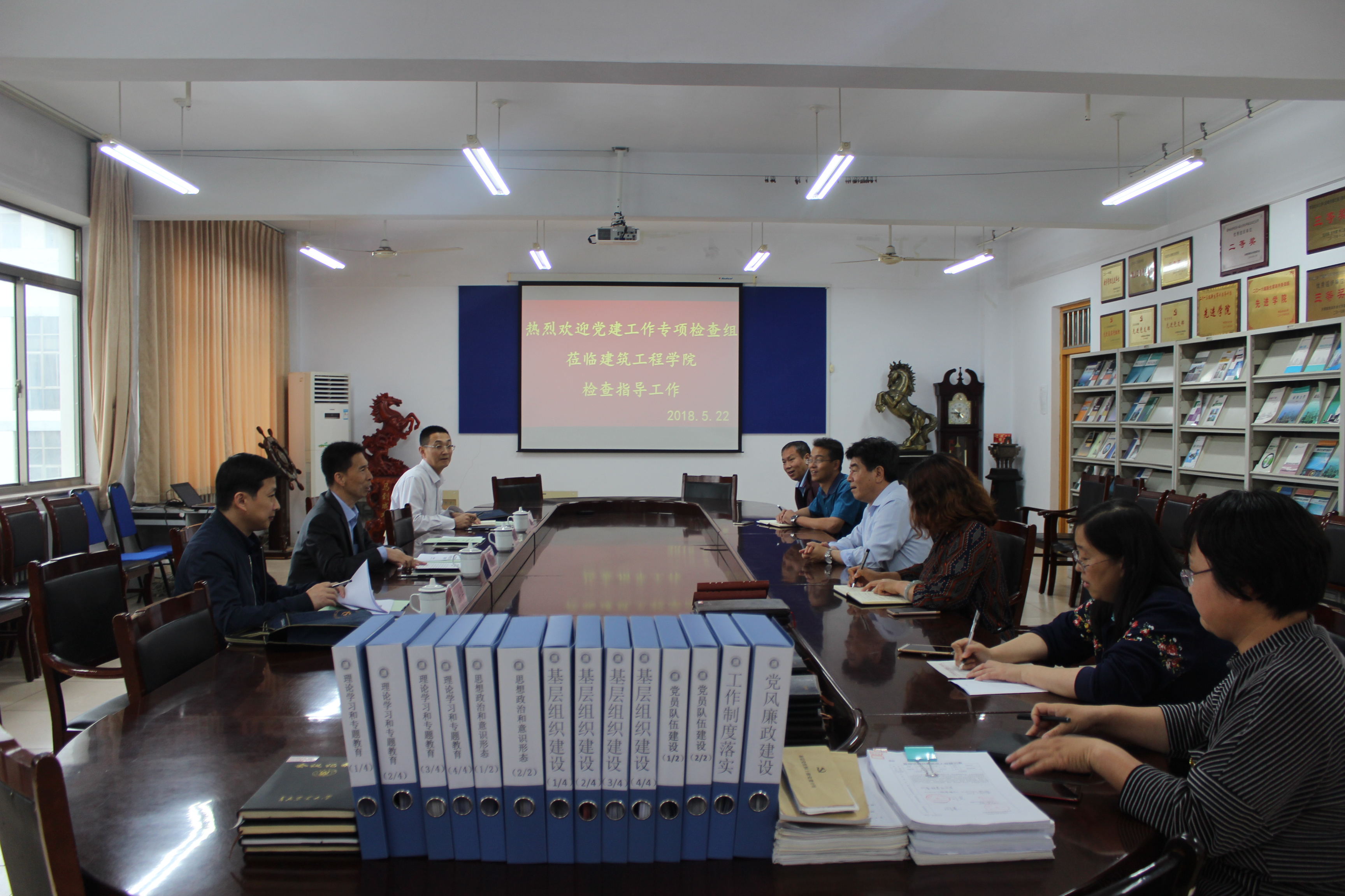 2018年5月22日,青岛农业大学党建工作专项检查第一小组对建筑工程学院基层党建工作进行专项督导检查。校党委副书记王庆军任组长,校机关党委书记、组织部副部长隋成竹,校纪委副处级纪检员、海都学院纪委范玉堂,校宣传部副部长张兴华为组员的检查组,采取现场检查、审阅资料的方式对学院2016年以来基层党建工作进行全面检查。学院党政领导、党支部书记参加检查会议。