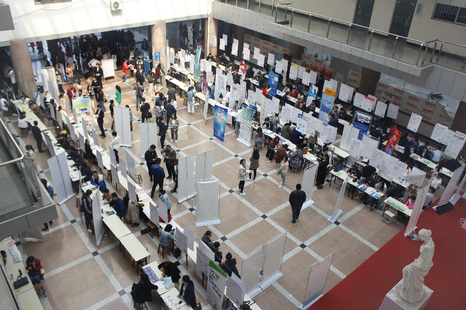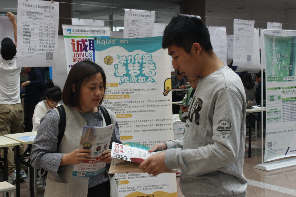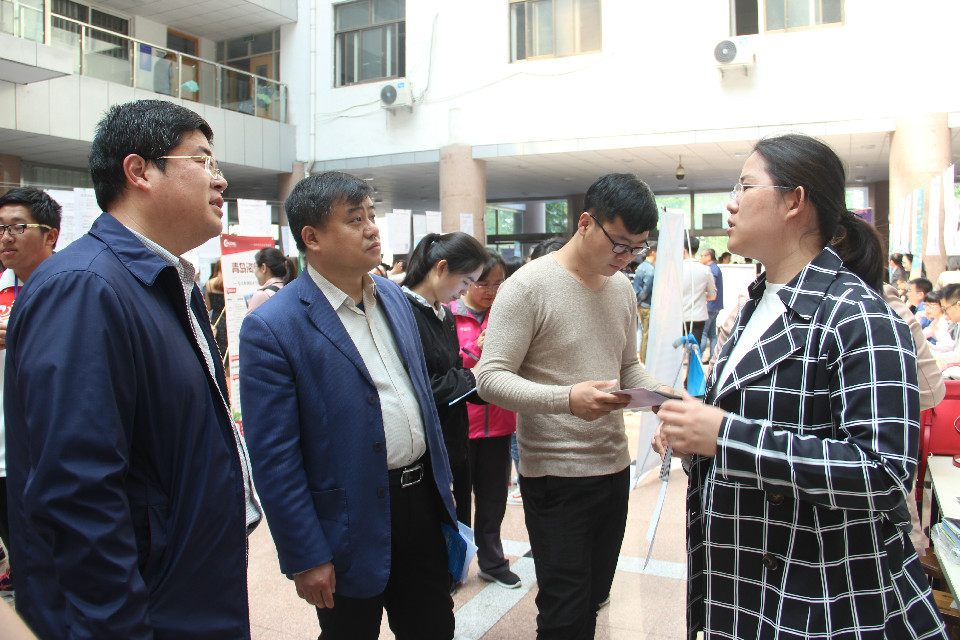 5月11日,青岛农业大学化学与药学院联合园林与林学院、植物医学院等七个学院于学校文经楼举办2019届毕业生七院联合招聘会。学院党委副书记、副院长史雪辉,院长助理徐鲁斌,团委书记王海霞,辅导员辛鑫亲临招聘会现场指导工作。