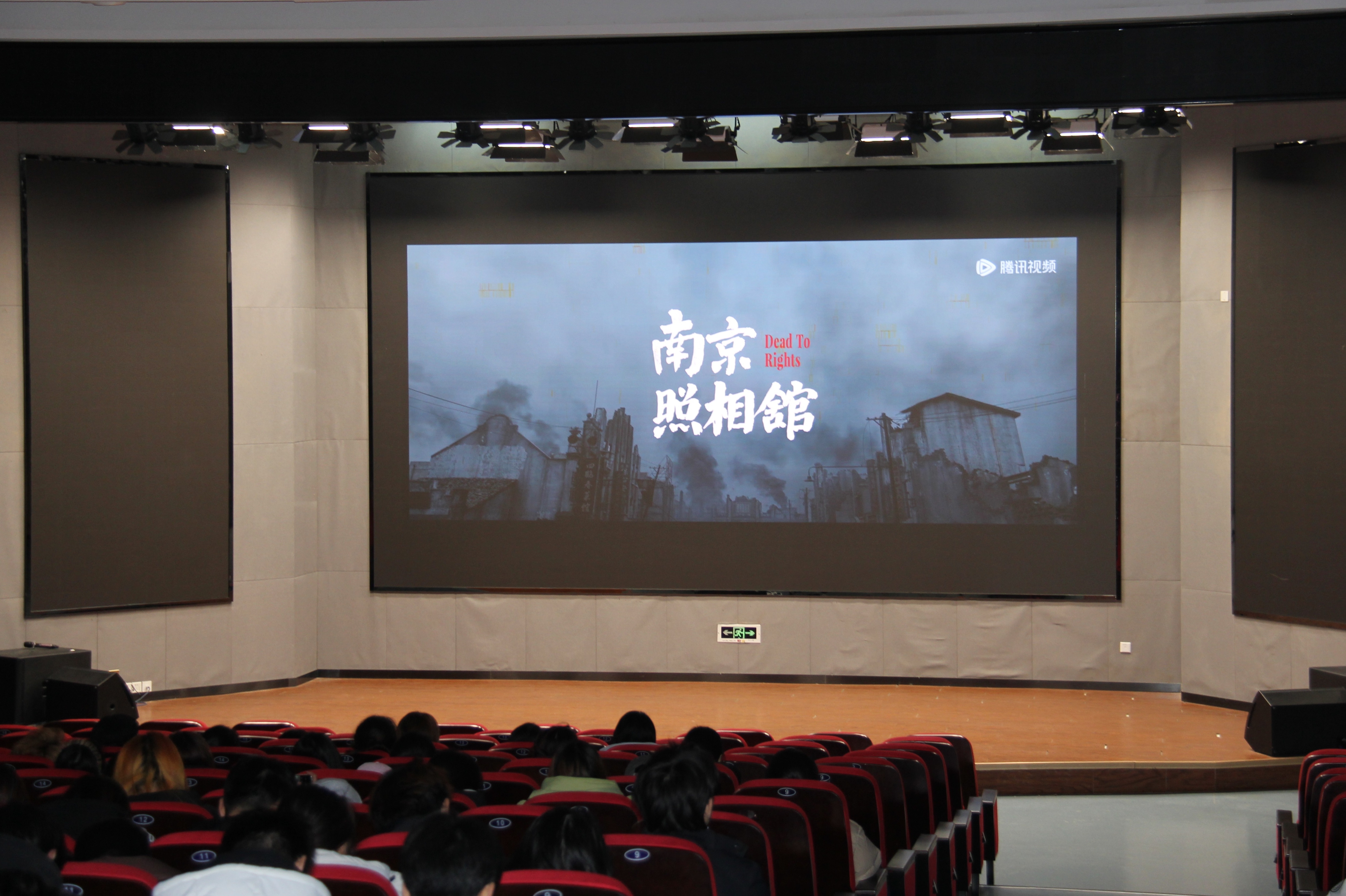 白芳在观影前围绕活动主题进行导学,阐述红色影视作品的思政育人价值,引导同学们在历史影像中感知民族精神、思考青年责任。随后,师生共同观看影片《南京照相馆》。该片以抗战时期一家普通照相馆的坚守为主线,通过平民视角展现战争岁月中的家国情怀与民族气节,情感真挚、叙事动人,生动诠释了普通人在时代洪流中的担当与抉择,引发了现场学生的深切共鸣。