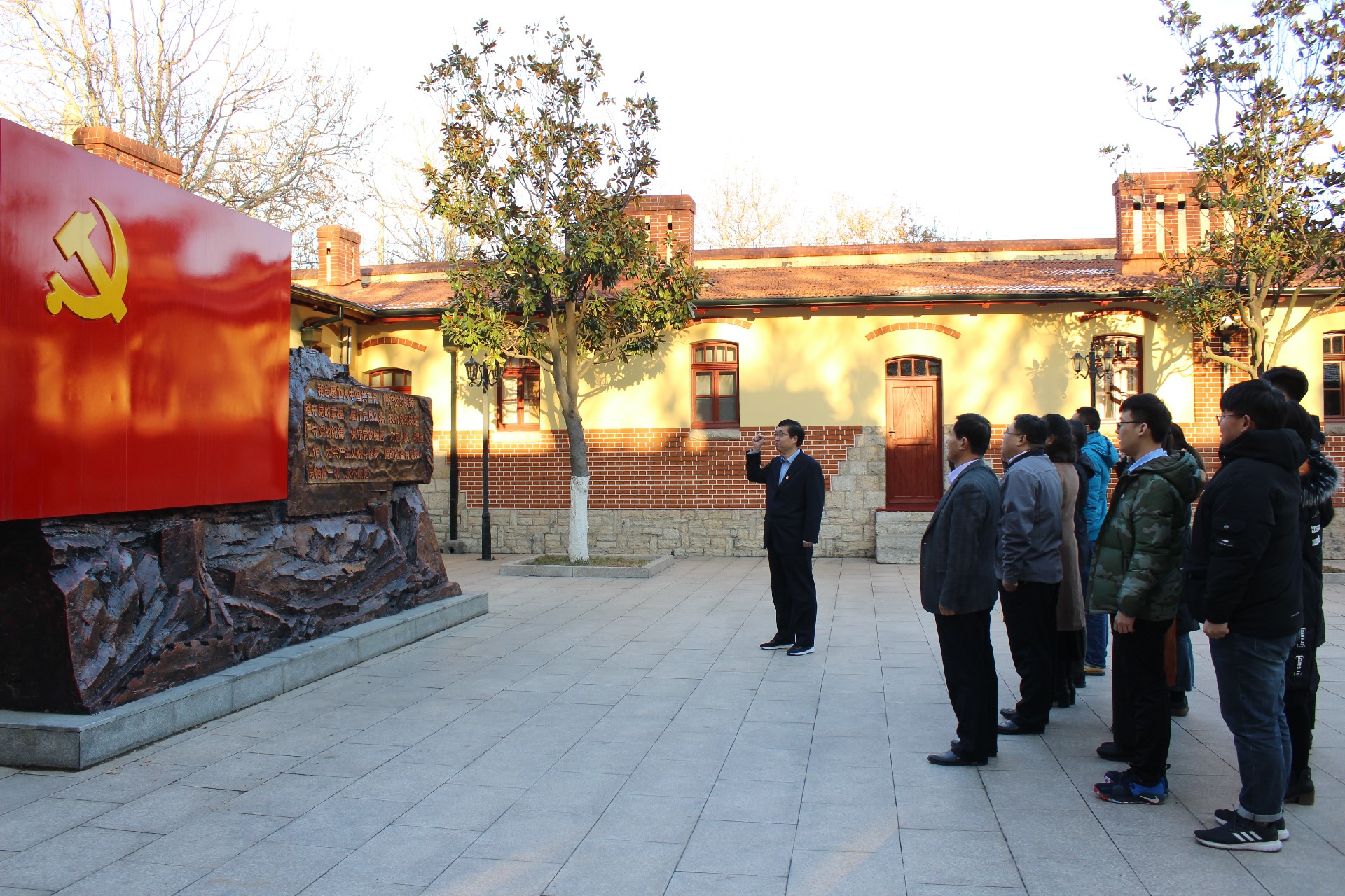在党总支书记闫美成的带领下,师生党员们瞻仰了先烈们的事迹,对青岛市地方党组织的最初成立与完善、中期探索建设和现在迅速发展等过程进行了详细地学习,充分领悟到中国共产党人“艰难困苦,玉汝于成”的伟大品质,深刻认识到青岛市党组织在大革命、土地革命、全民族抗日战争等时期的历史业绩,展现了共产党人坚定的政治信仰、艰苦奋斗的作风和勇于奉献的精神。